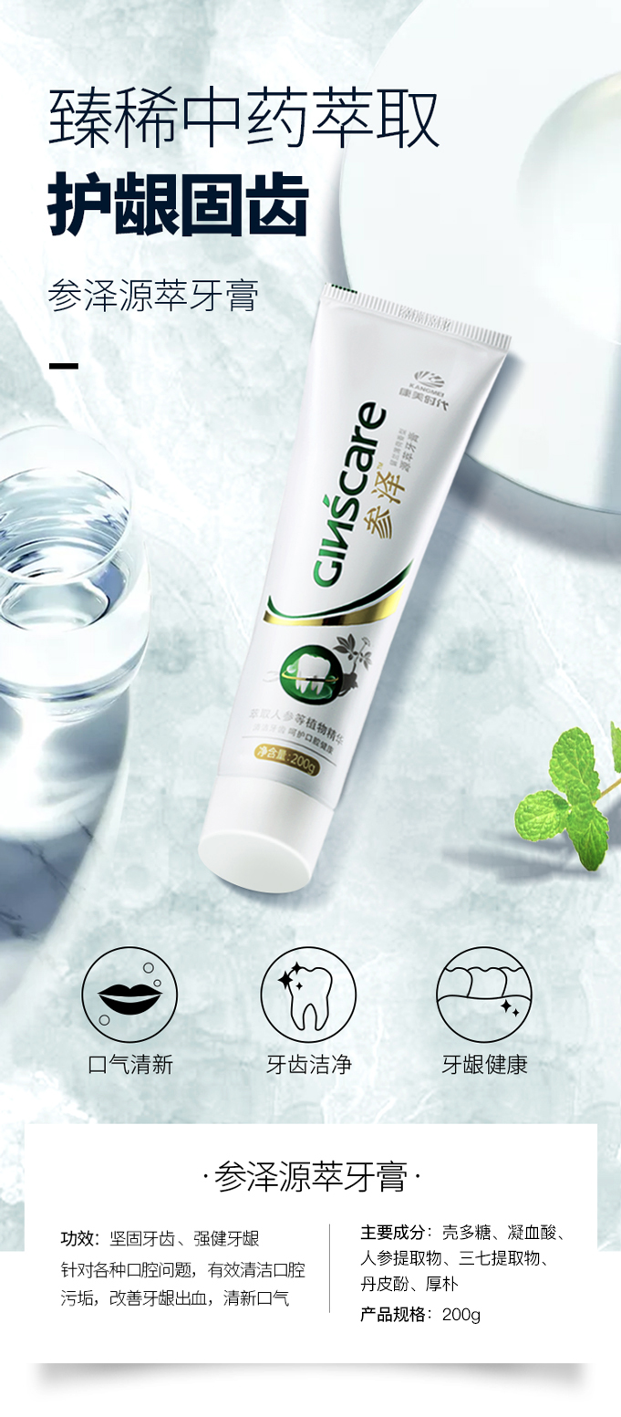 康美时代参泽源萃牙膏200克/支 萃取中药护龈固齿 清新口气