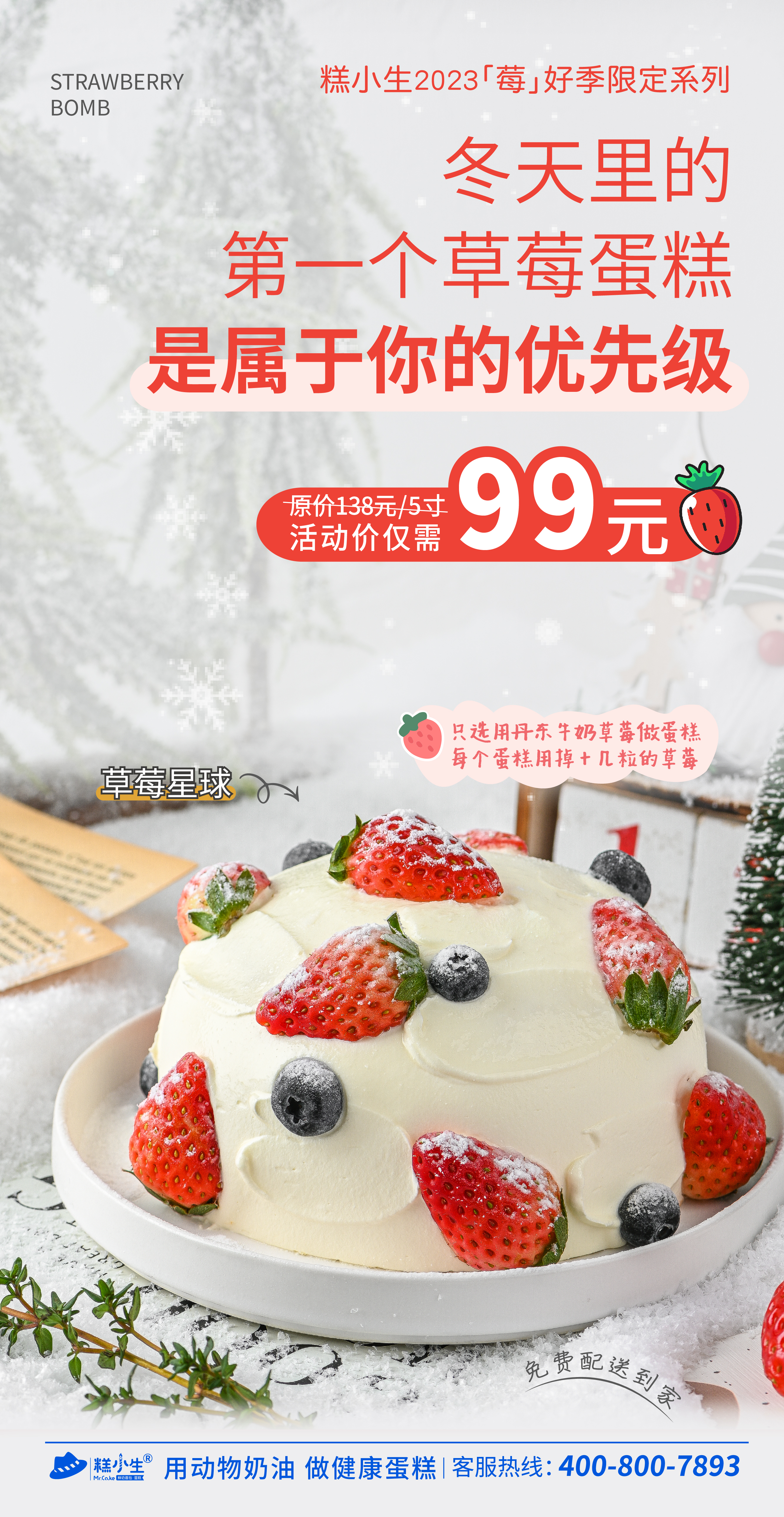 糕小生「莓」好季限定系列【草莓星球】冬天里的第一个草莓蛋糕,是属于你的优先级,只用来自辽宁丹东的牛奶草莓,少女心炸裂~