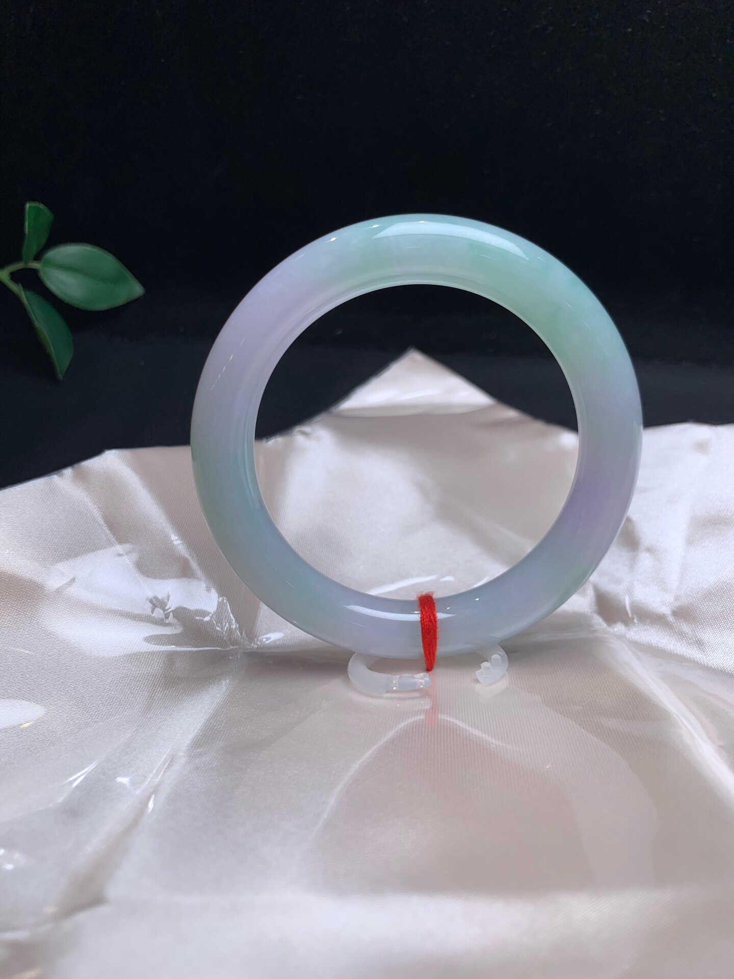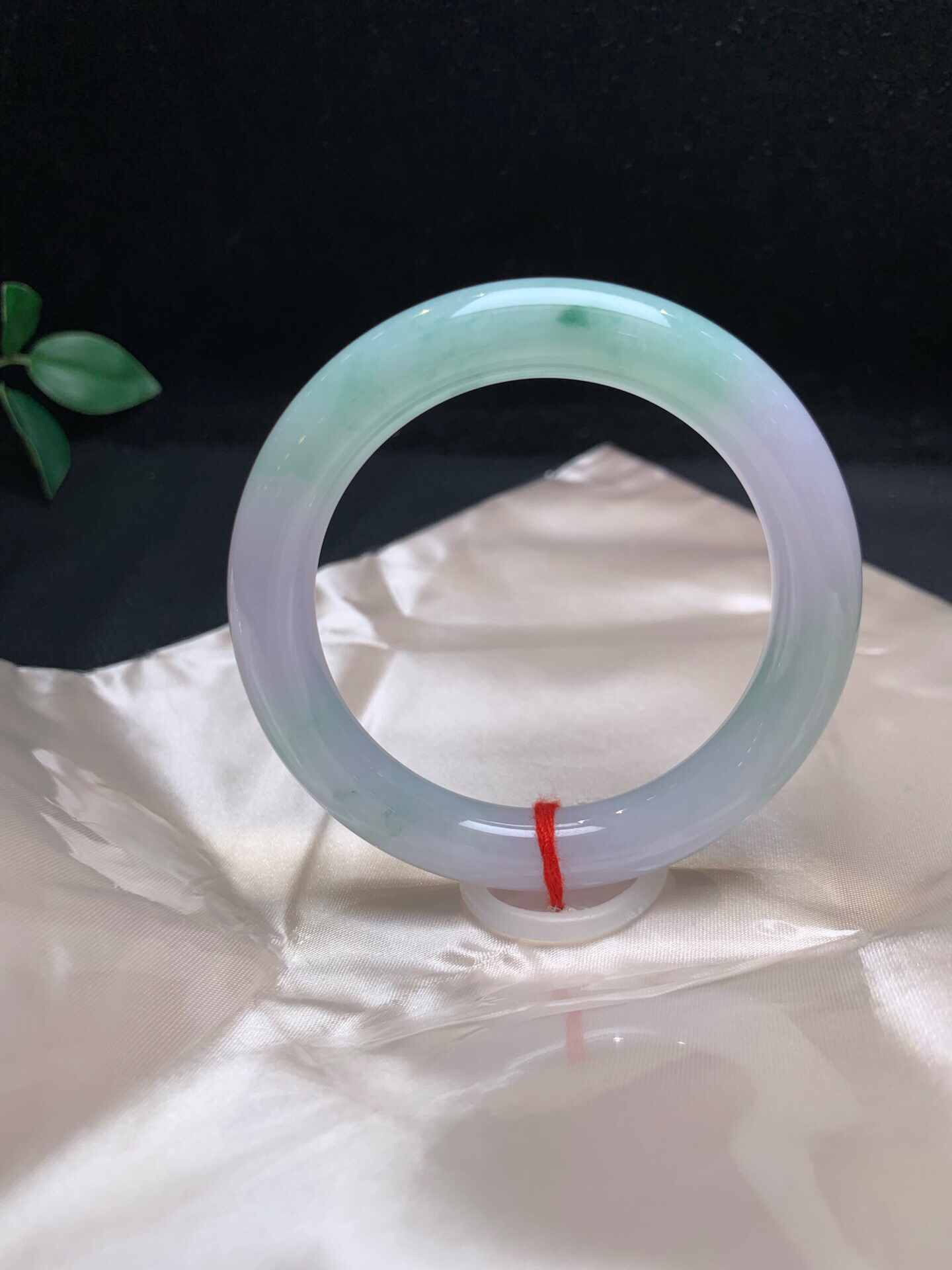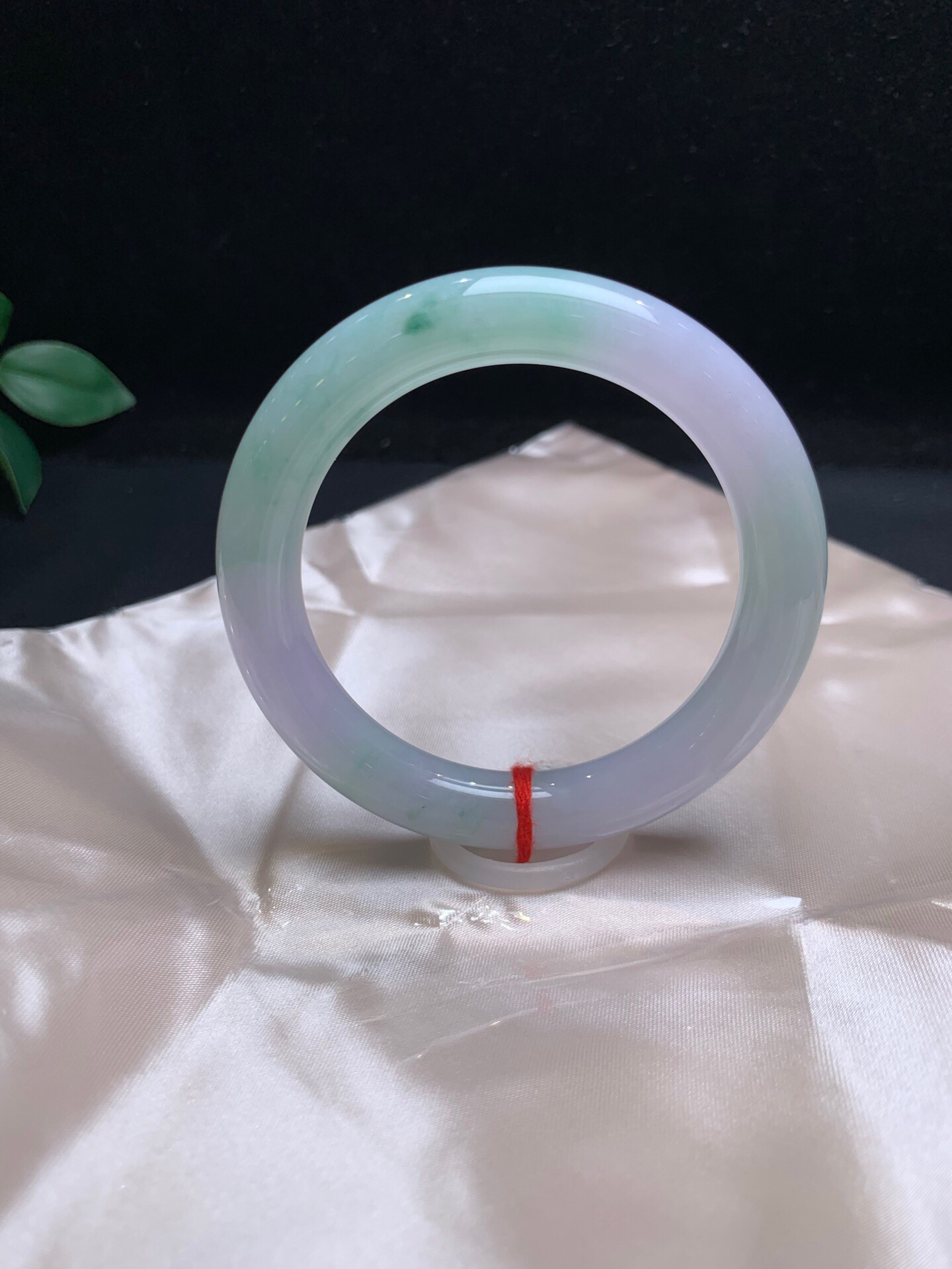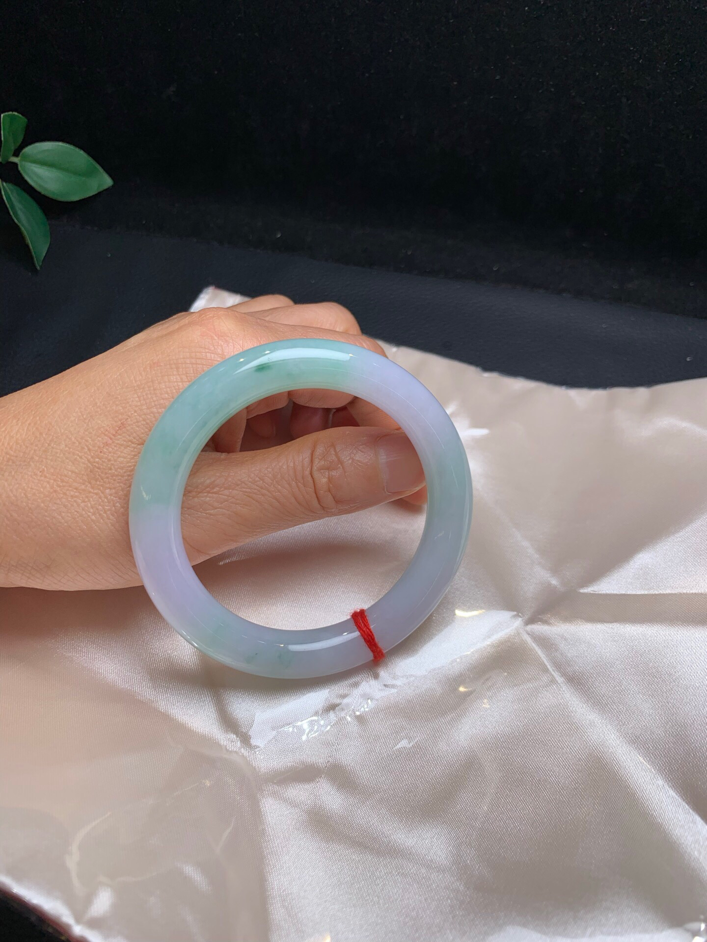 620726,56.3飘绿圆条手镯。12.5mm,条形好,整条带浅绿底,干净清爽,完美的