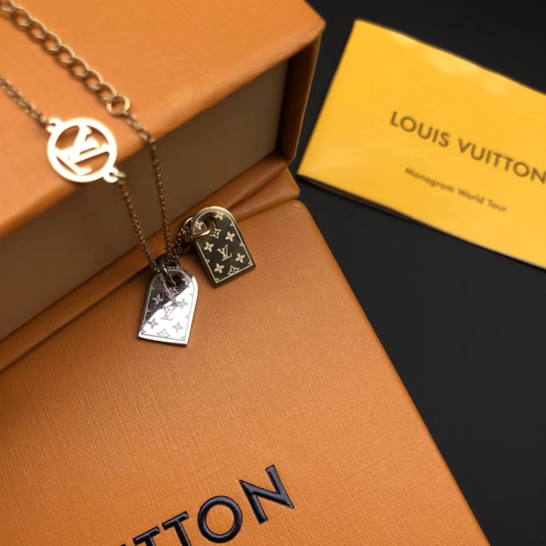 D010227简约大气百搭款bling bling几何双环双扣项链