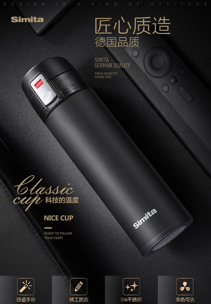 【保温杯】Simita保温杯316不锈钢男女士商务礼品杯便携弹跳水杯子