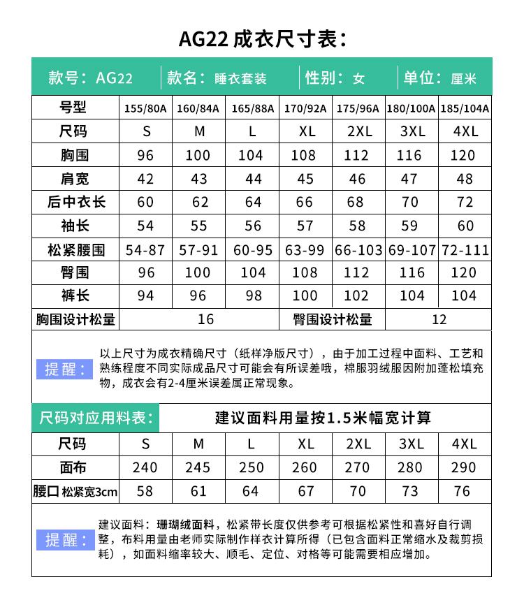 裁缝学苑 AG22-M50男女秋冬套装家居服珊瑚绒法兰绒睡衣
