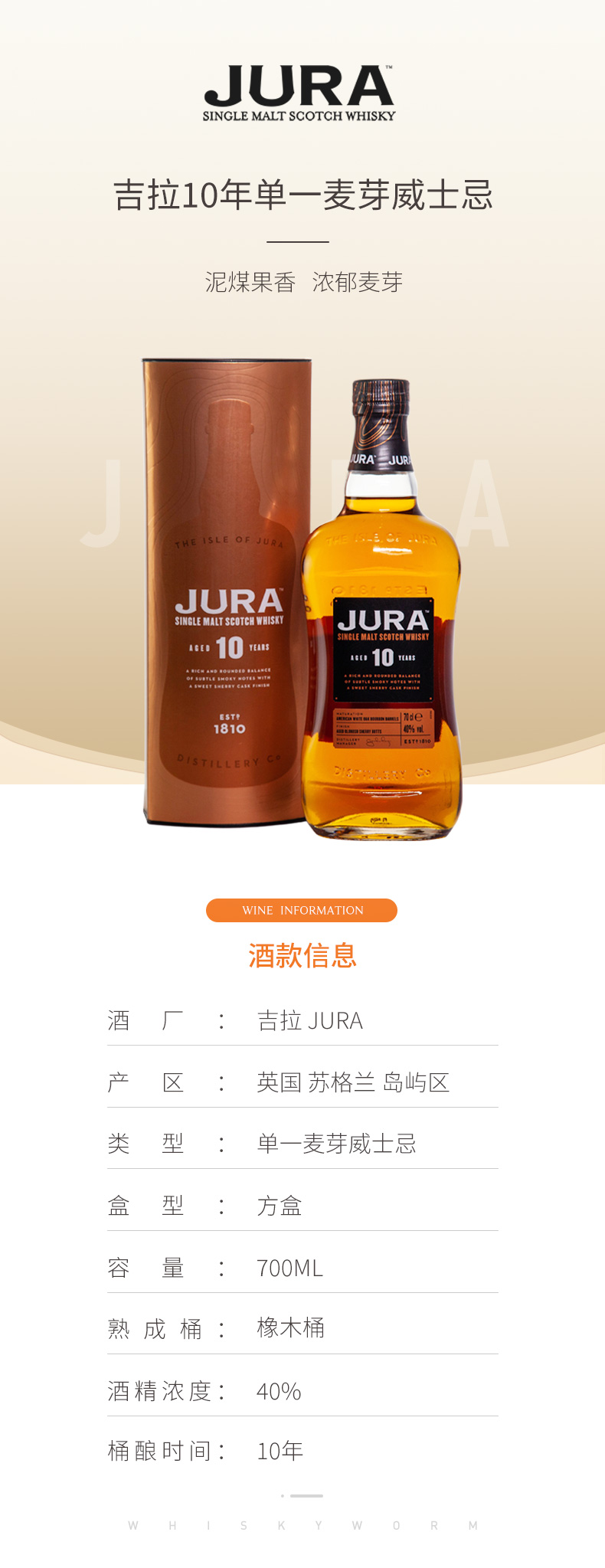 【行货】苏格兰吉拉10年单一麦芽威士忌 700ml*1瓶(带杯子)