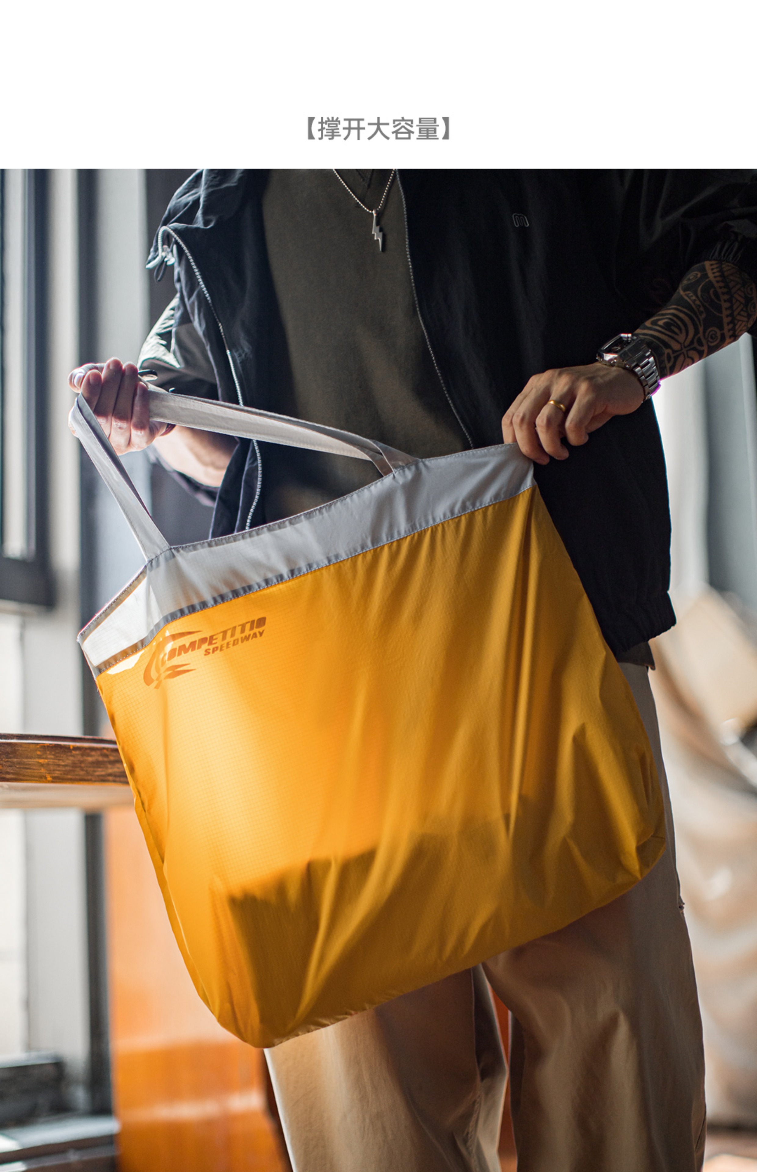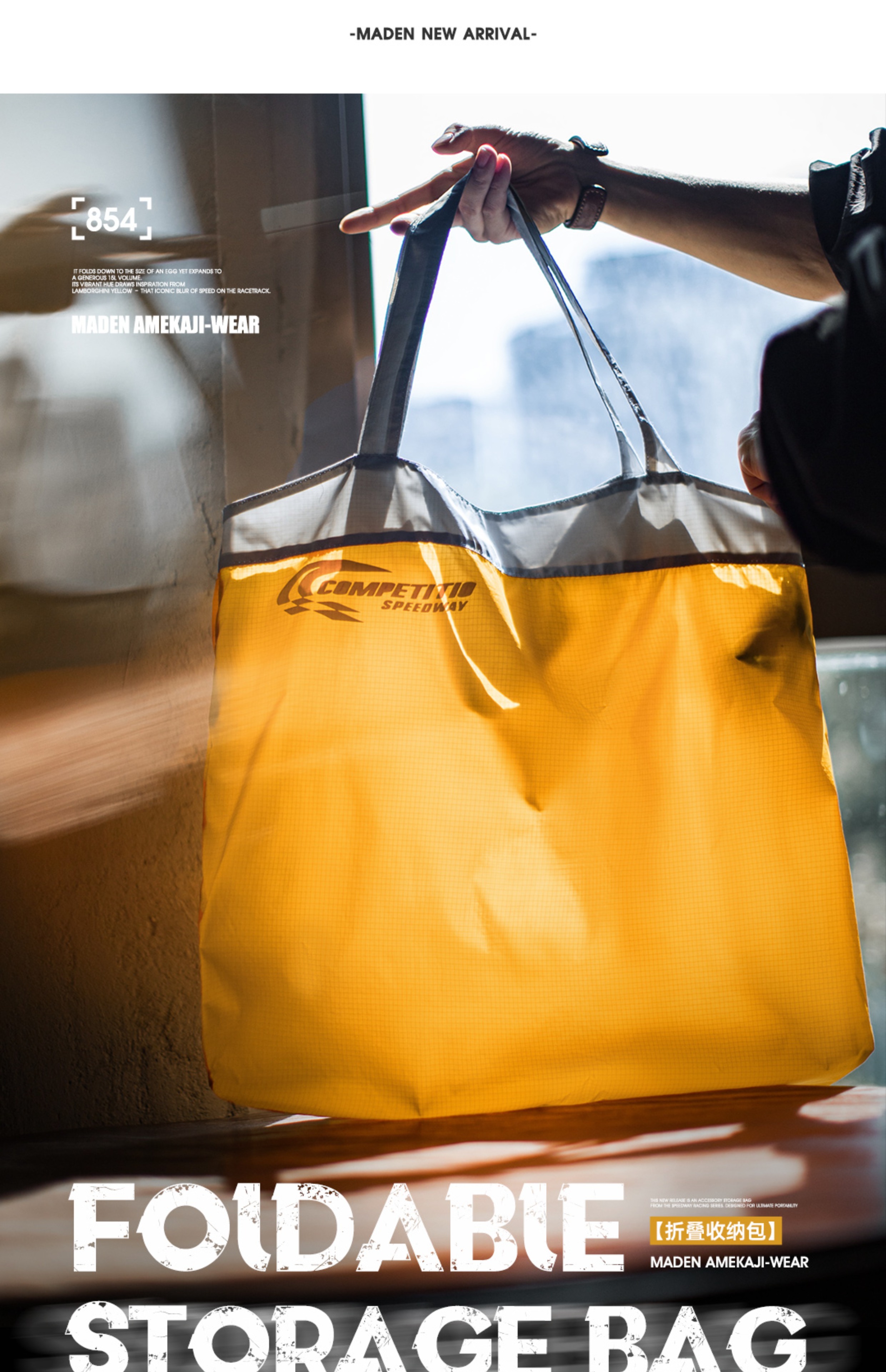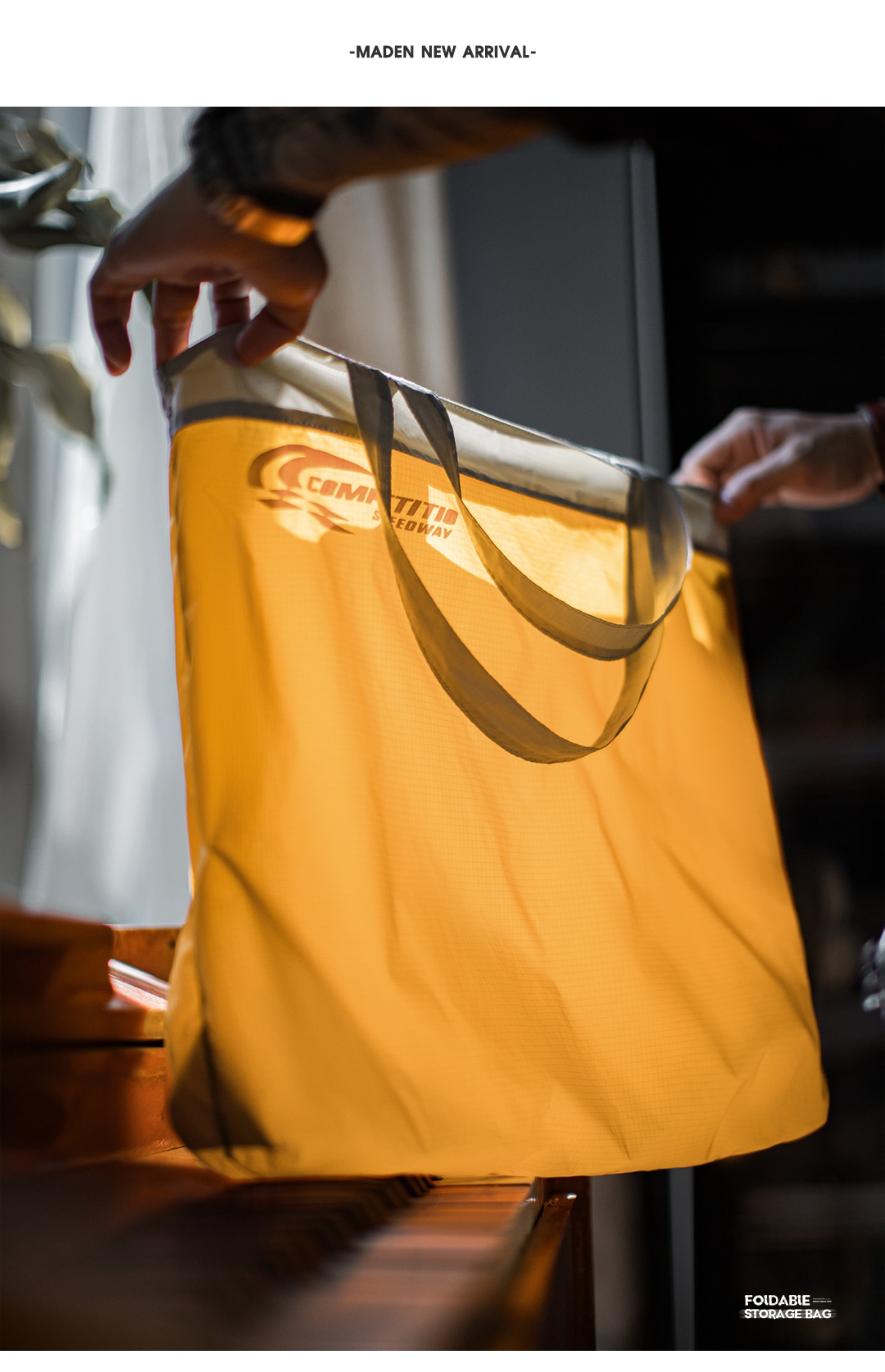 马登工装日系折叠大容量托特包黄色超轻便尼龙户外通勤旅行手提包