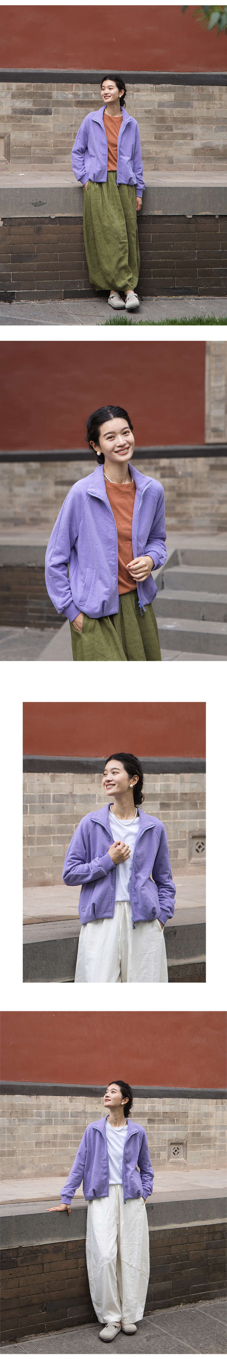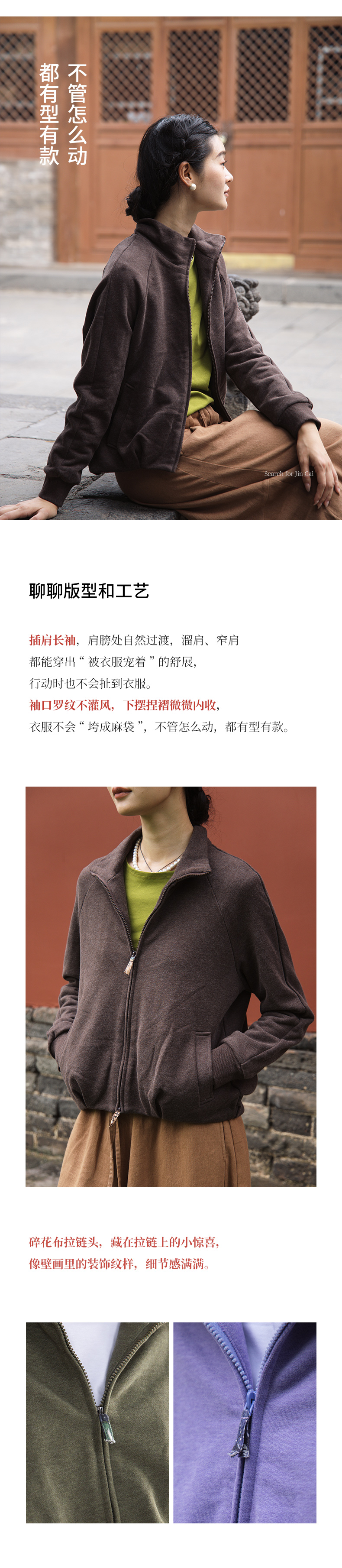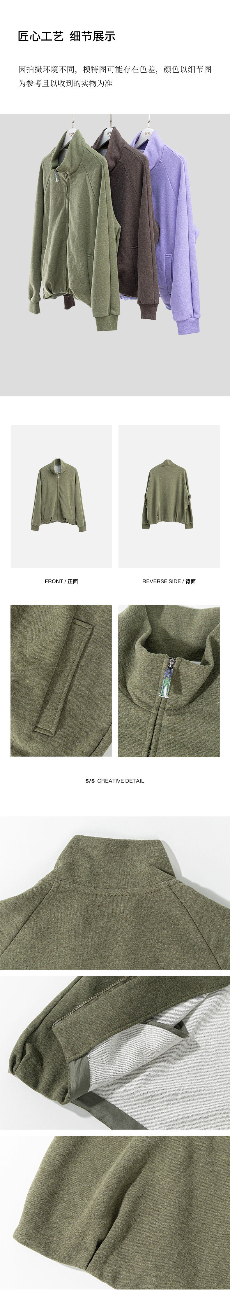 绽放589朵/油画卫衣·超柔云感棉简约立领开襟插肩长袖卫衣女外套