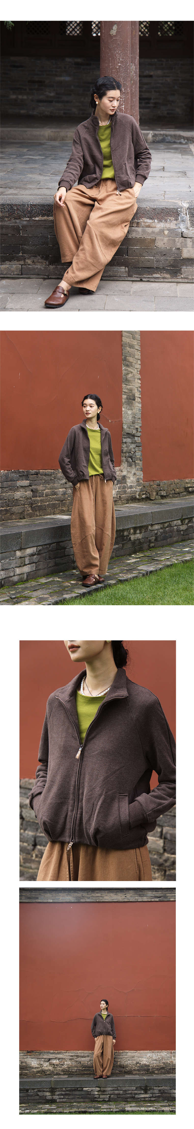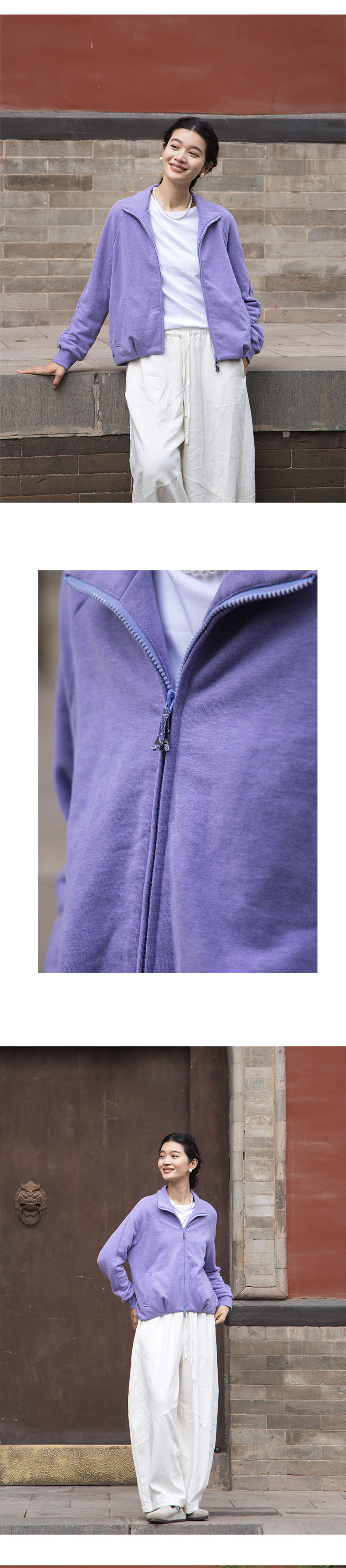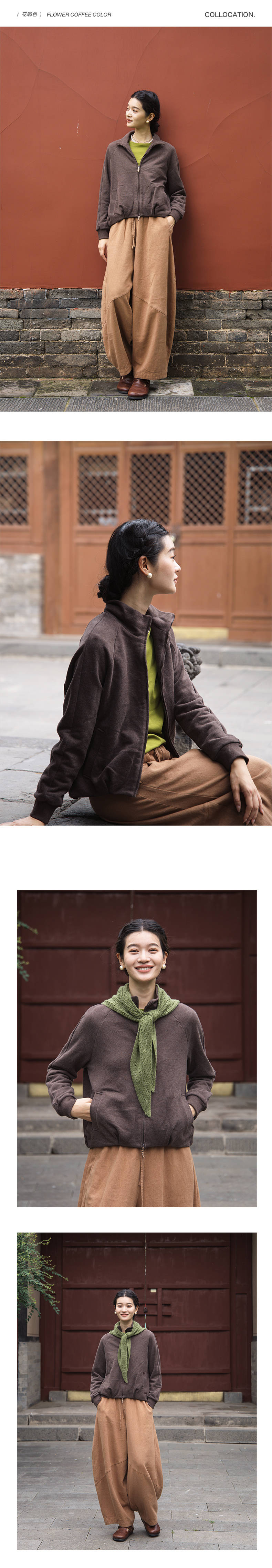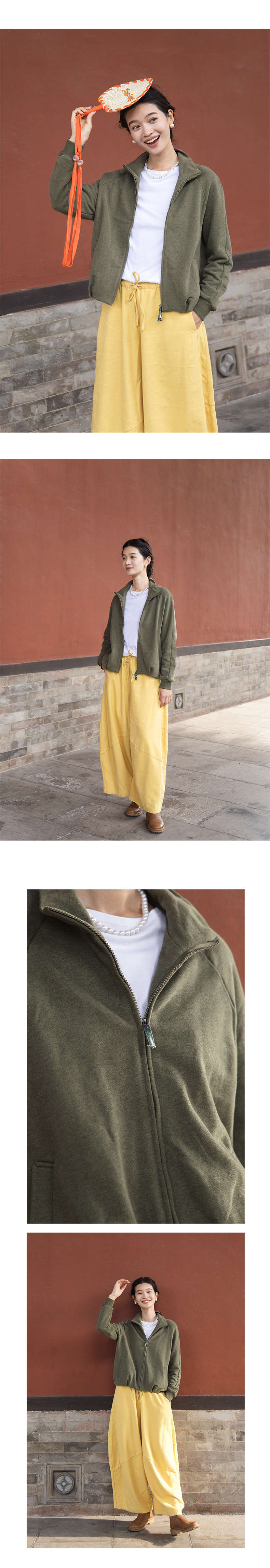 绽放589朵/油画卫衣·超柔云感棉简约立领开襟插肩长袖卫衣女外套