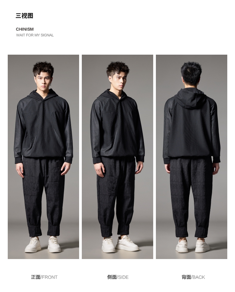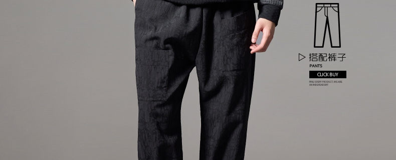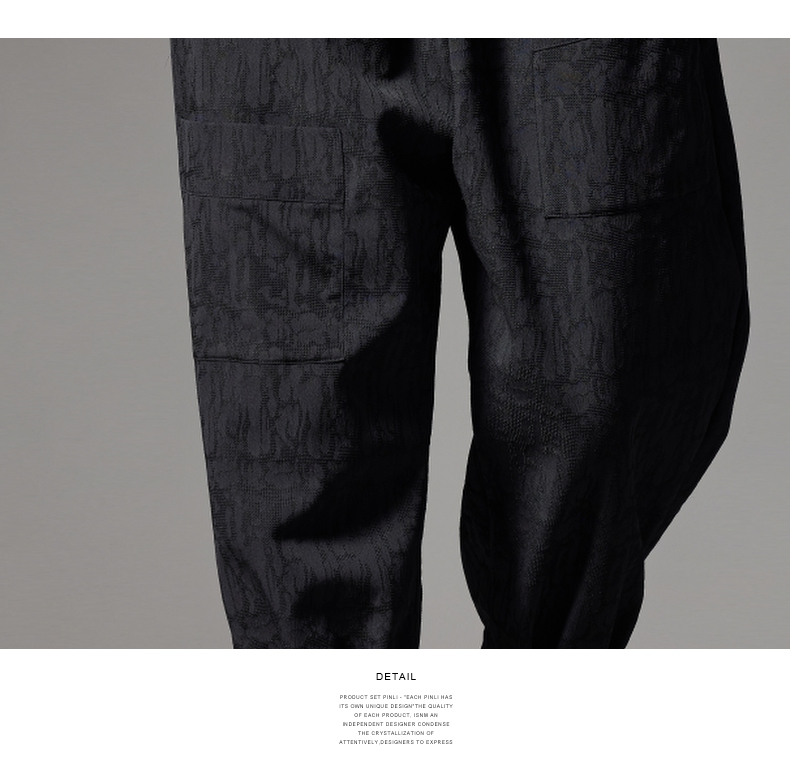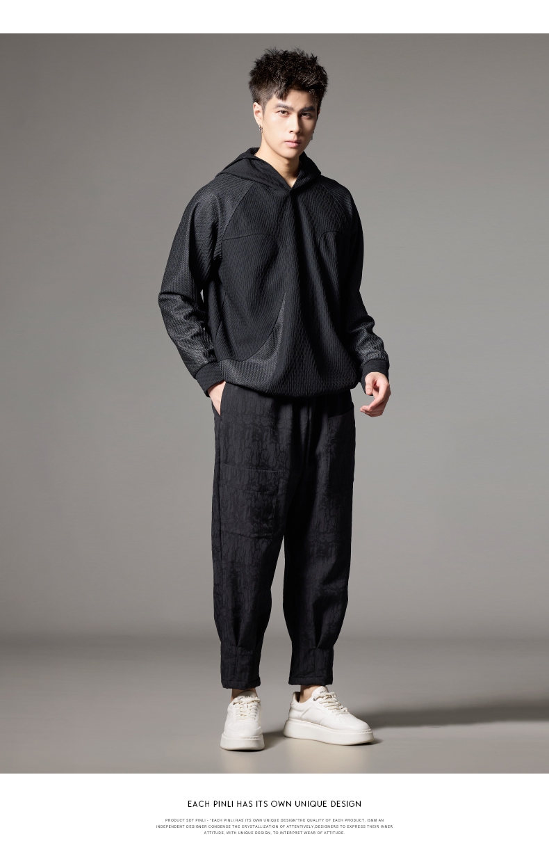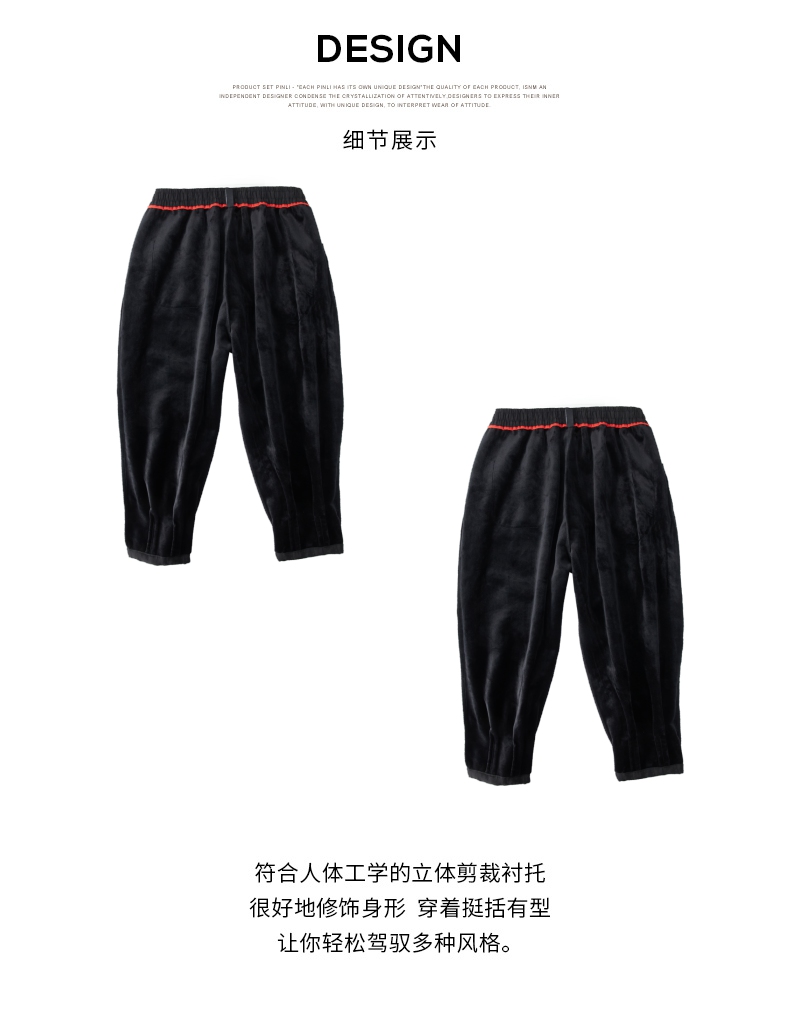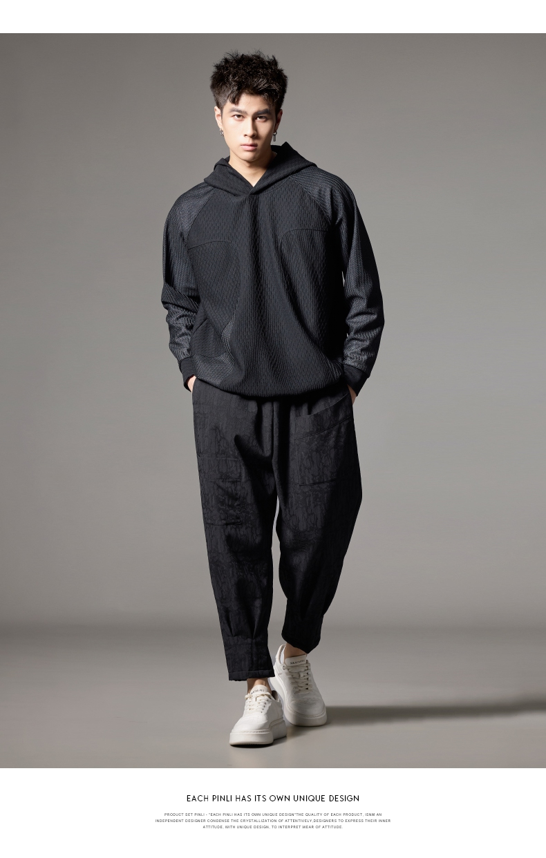 PINLI品立秋冬新款加绒加厚束脚九分裤男暗纹潮牌宽松休闲裤B243117050