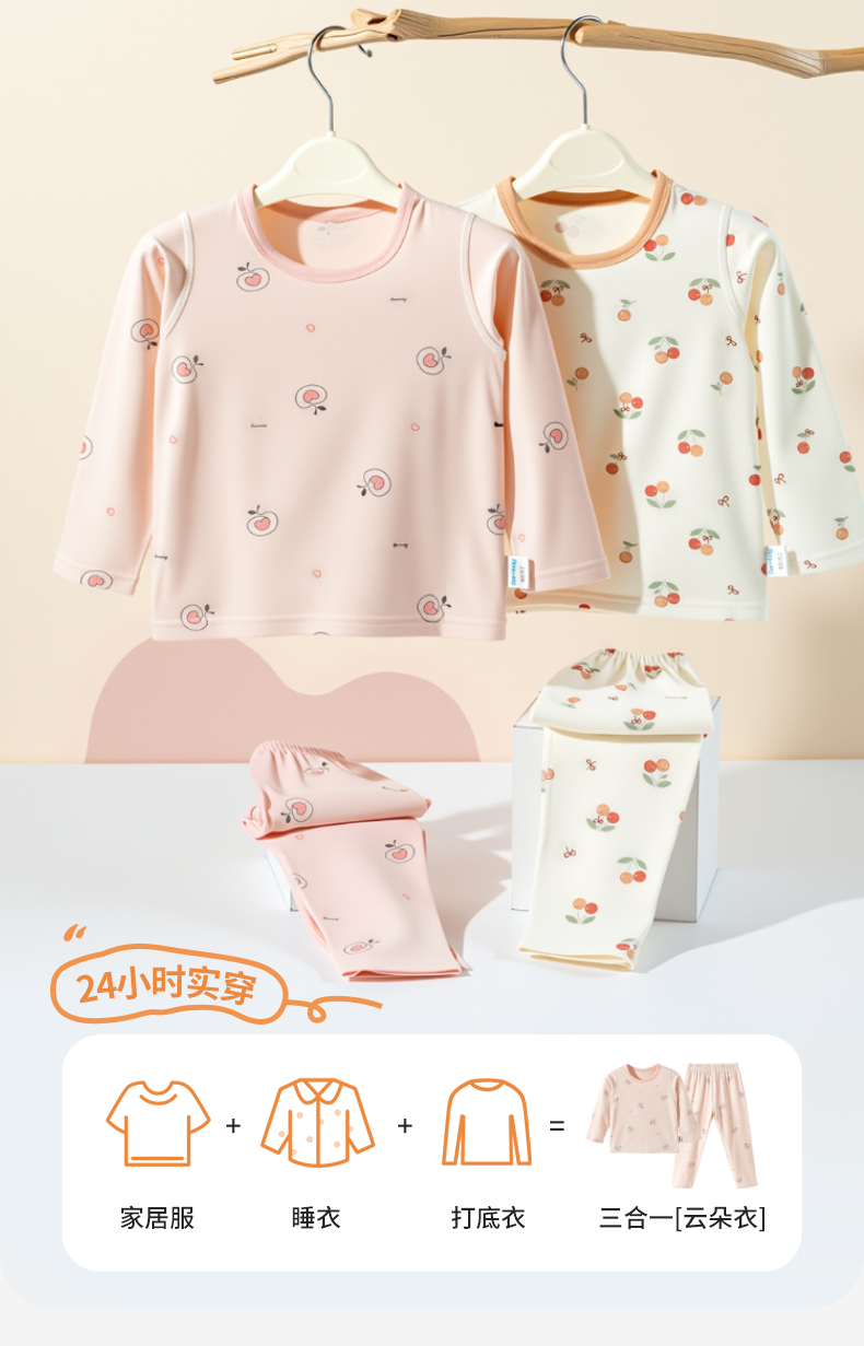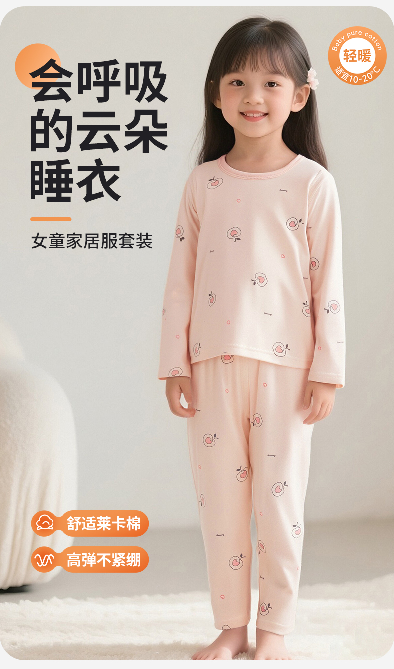 2025年贝贝怡儿童睡衣女童长袖套装春秋新款小童家居服柔软高弹宽松打底可外穿ZB3ET008