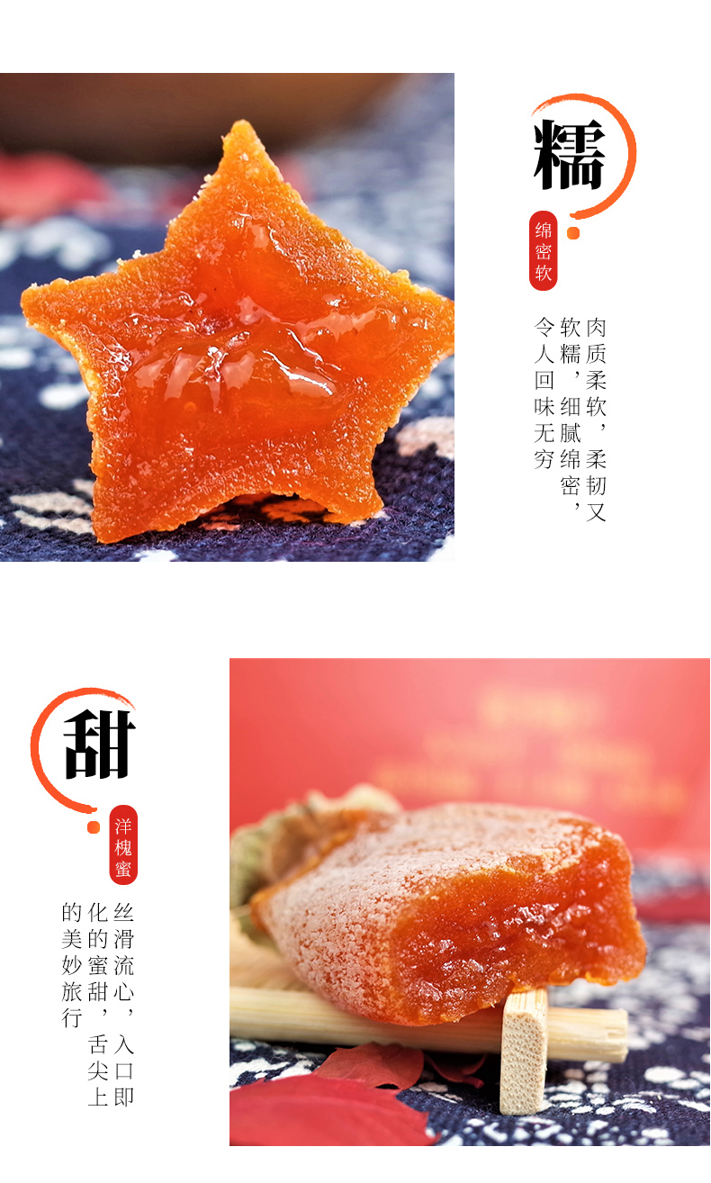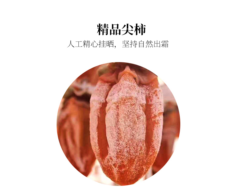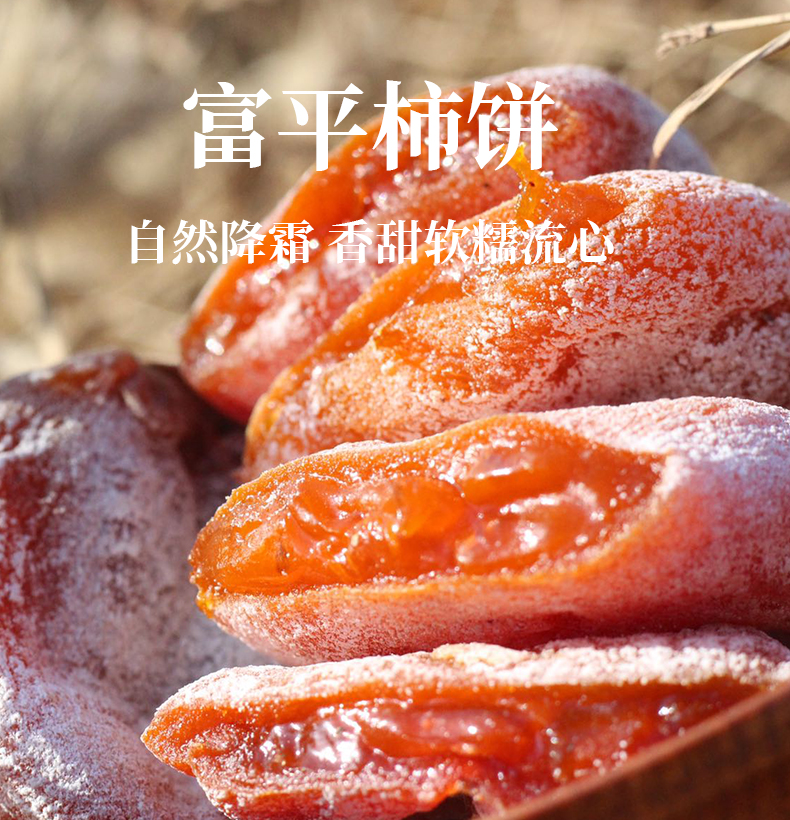 1.柿饼表面附着一层白霜,是柿饼晾晒风干过程中,柿饼水分被风干,糖分留在柿饼表面,遇冷结成的糖霜,并非发霉哦。
