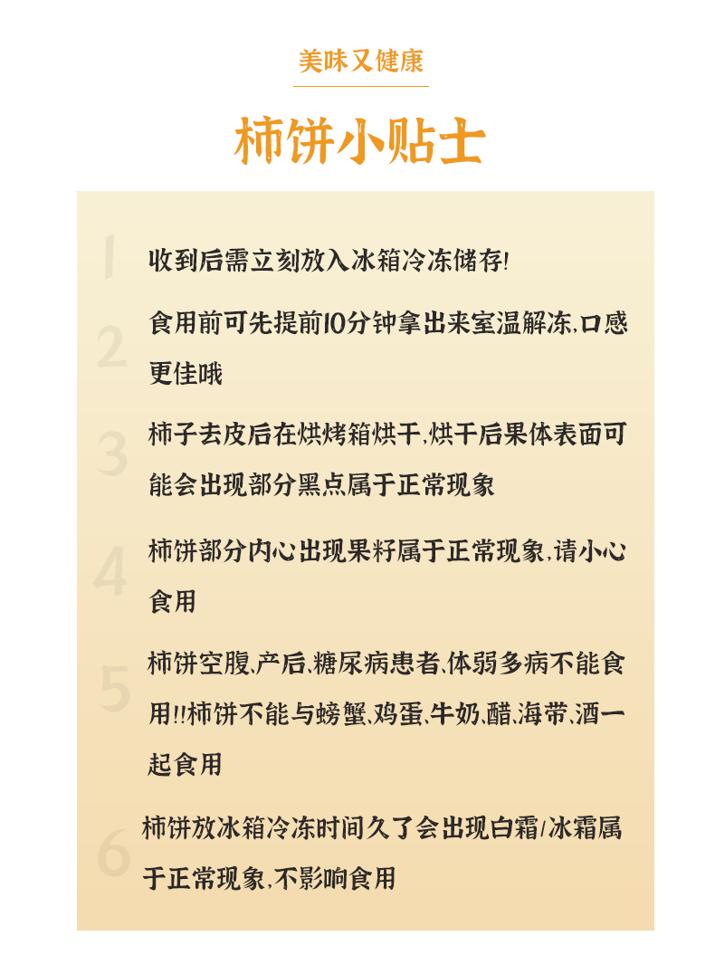 2.收到的柿饼要及时放入冰箱冷冻储存!