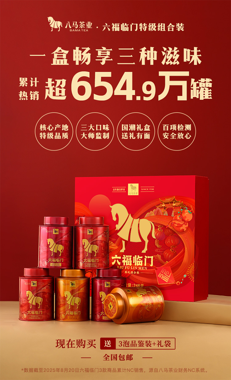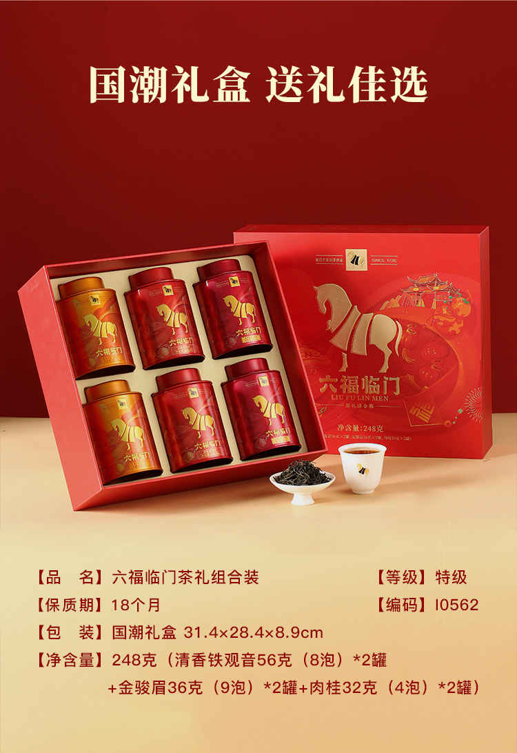 八马茶业 | 六福临门安溪铁观音肉桂金骏眉红茶茶礼组合礼盒装248g