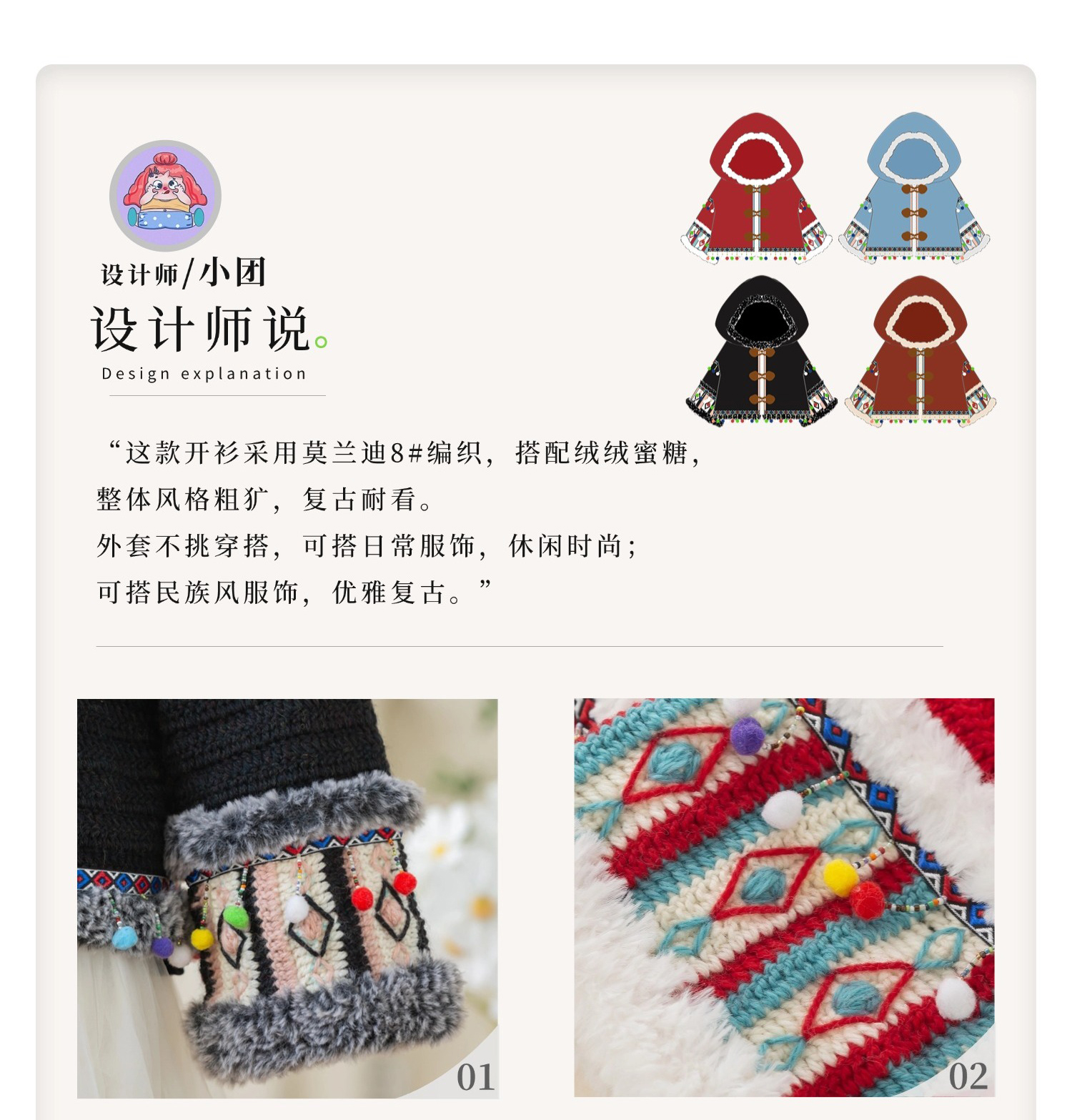苏苏姐家雪域亲子开衫手工diy编织钩针毛线团自制外套材料包