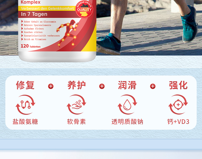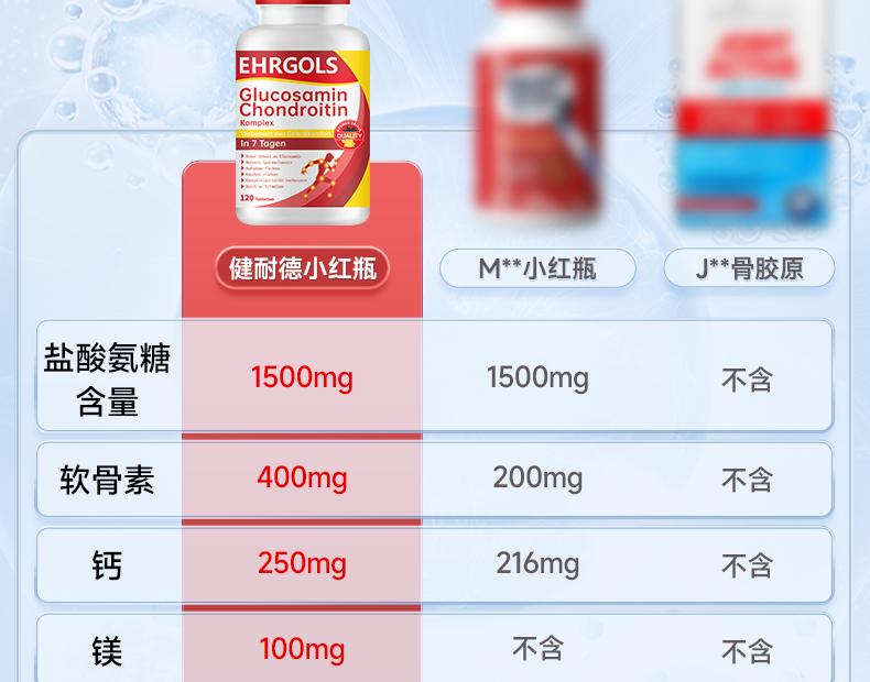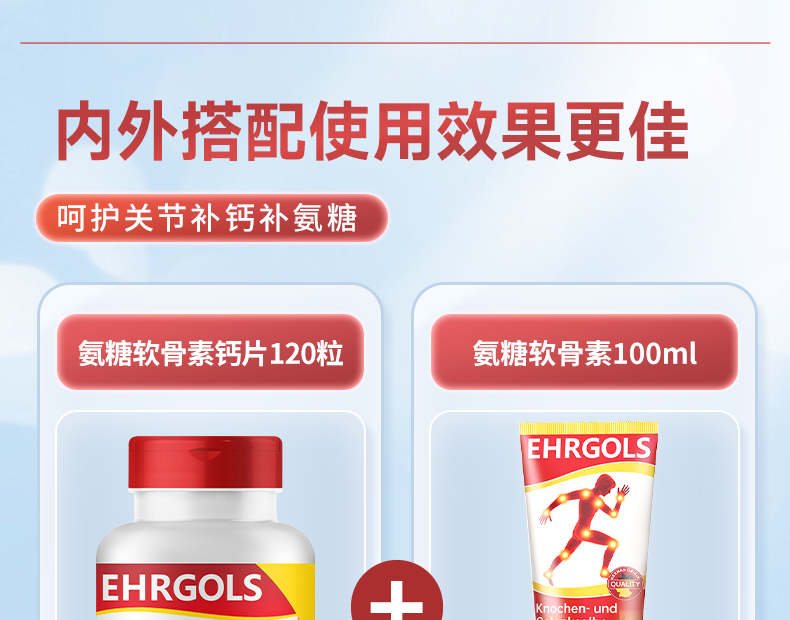 德国进口EHRGOLS氨基氨糖软骨素钙片补钙骨胶原中老年护关节