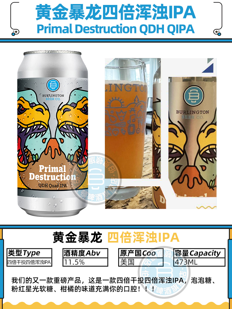 【冷库储存】美国伯灵顿黄金暴龙四倍浑浊IPA啤酒 11.5%vol