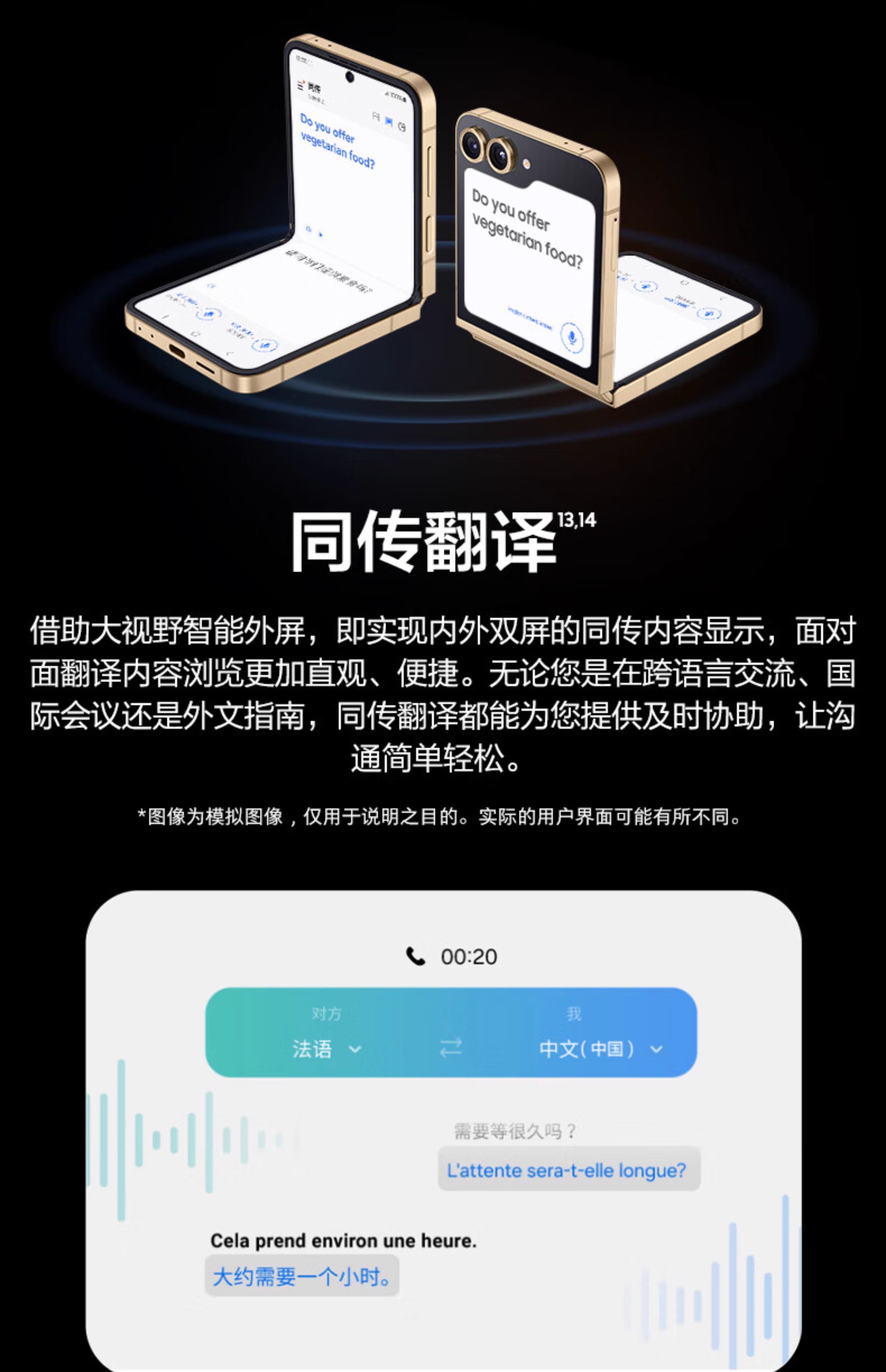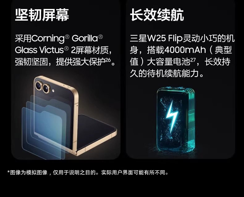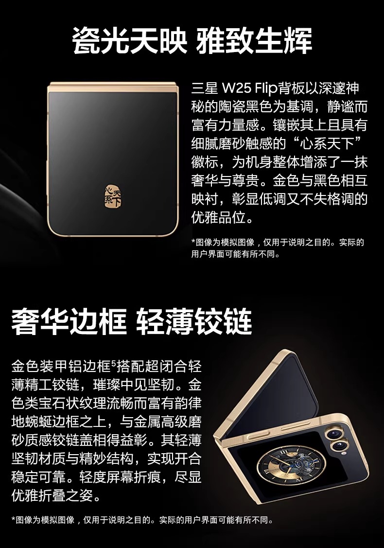 【官方直营】Samsung/三星 W25 Flip SM-W7025ZDACHC折叠手机