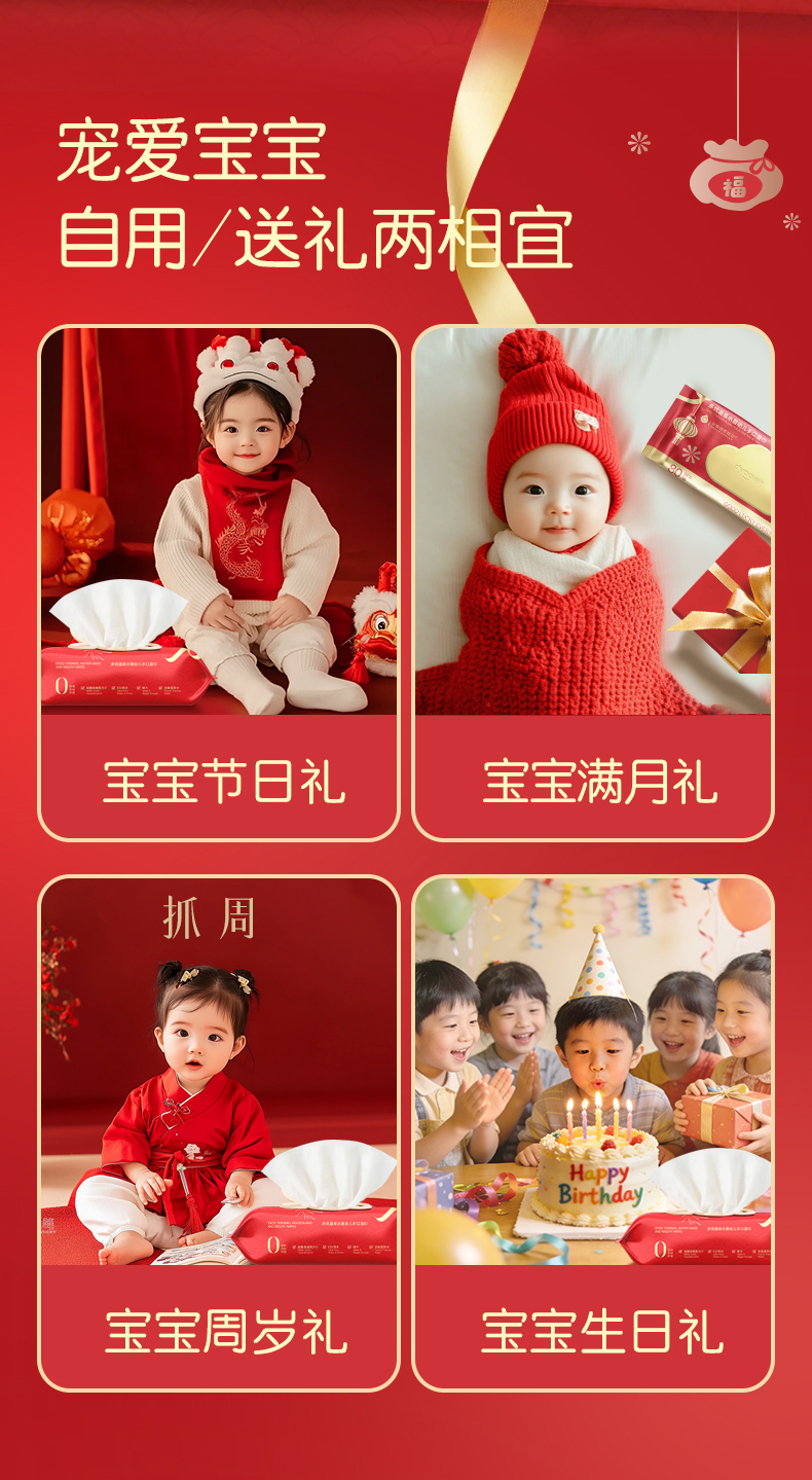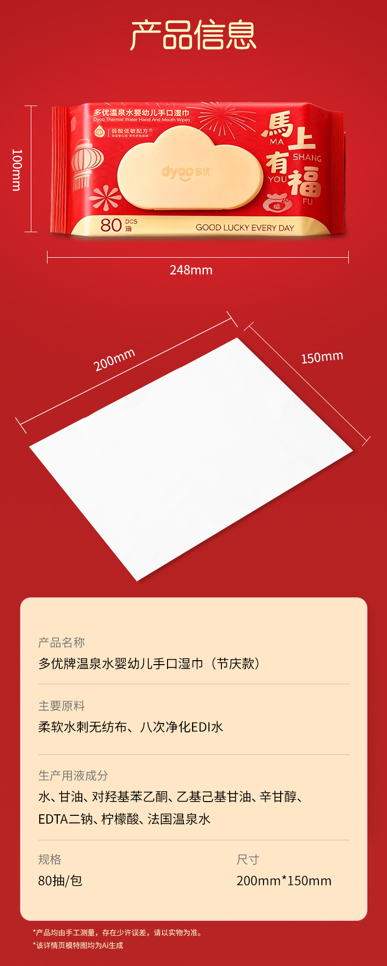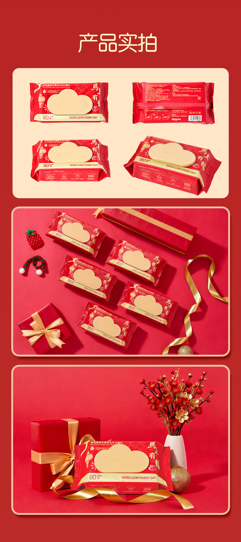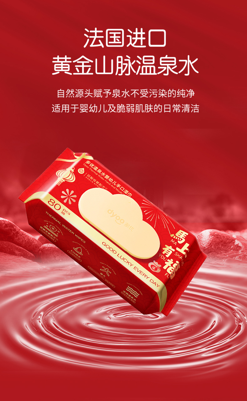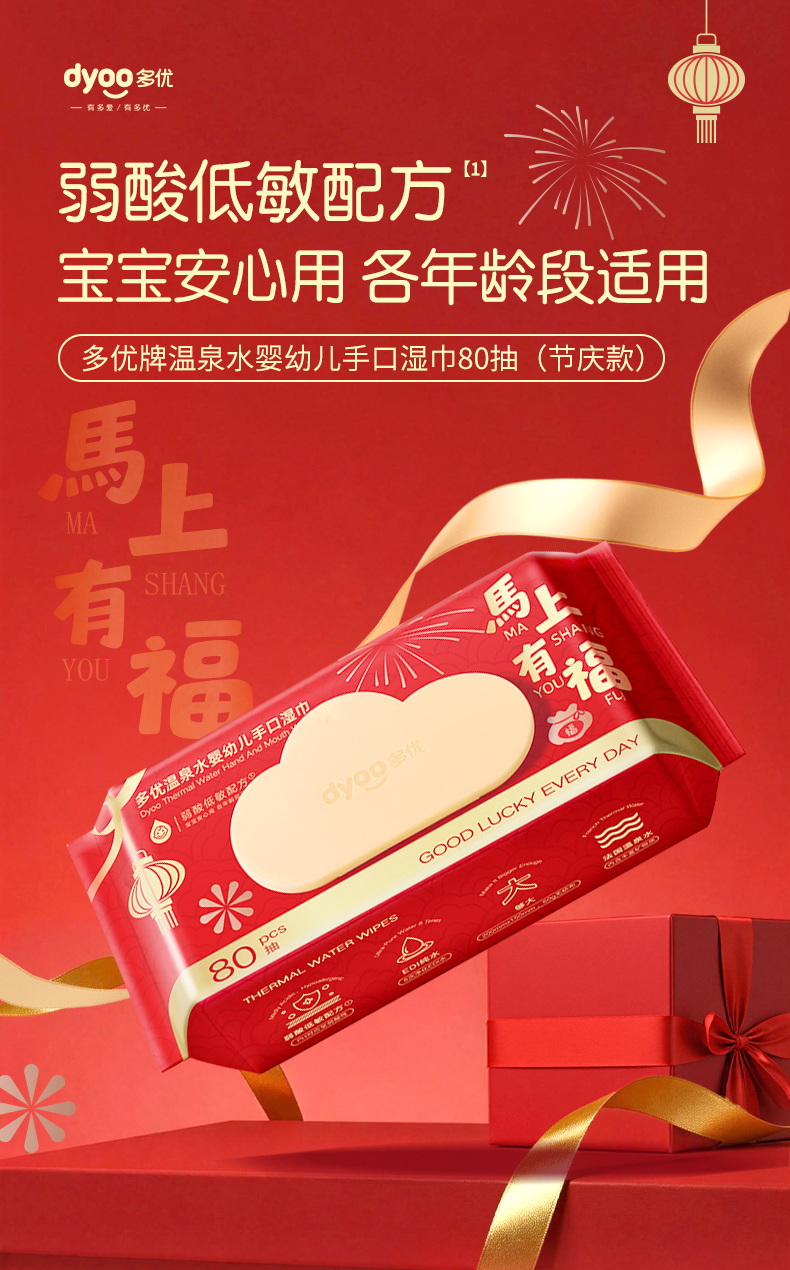 多优温泉水婴幼儿手口湿巾80抽(节庆款)