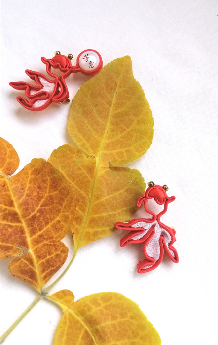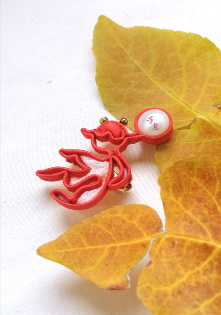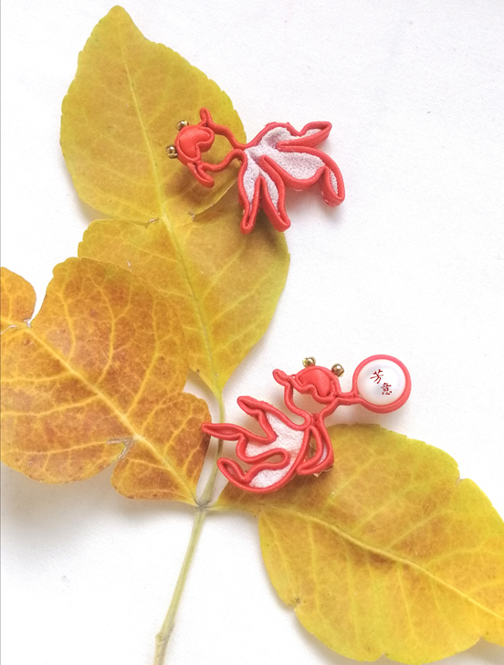 双鱼盘扣造型,缘于父亲五十多年前买的丝绸被面,传统双鱼纹样。