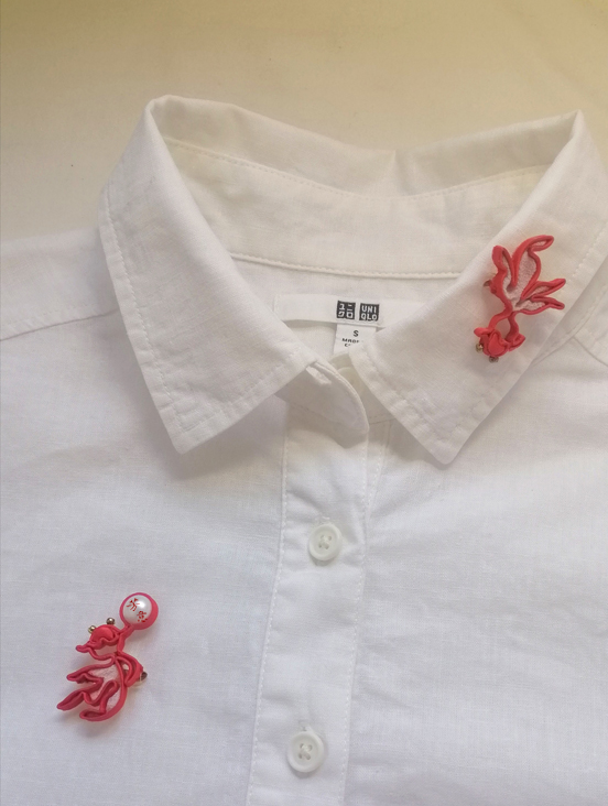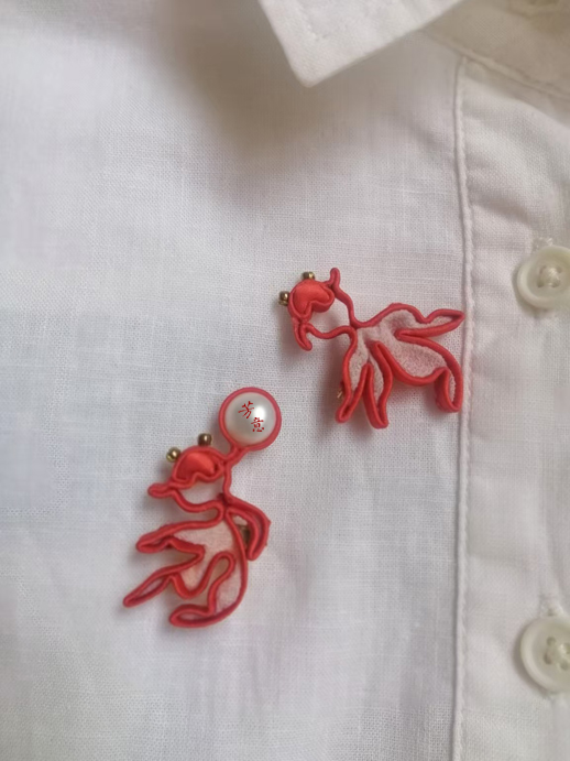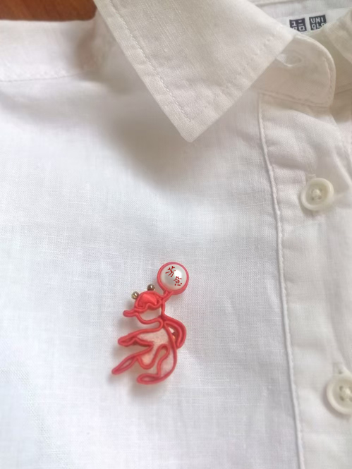 好友建议,做成胸针吧,可以送给双鱼座的朋友。于是有了可自由点缀在衣襟领口的双鱼胸针。