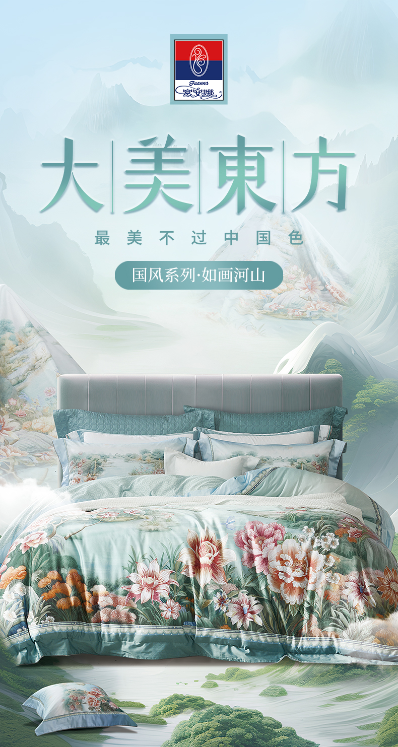 【6F】富安娜国绣独幅床单四件\国风系列·如画河山,吊牌价6980~7980,+199元,再得吊牌价1980~2380的蚕丝大豆暖芯春秋被\星婉1条