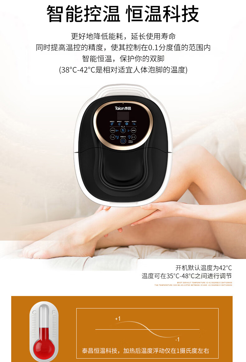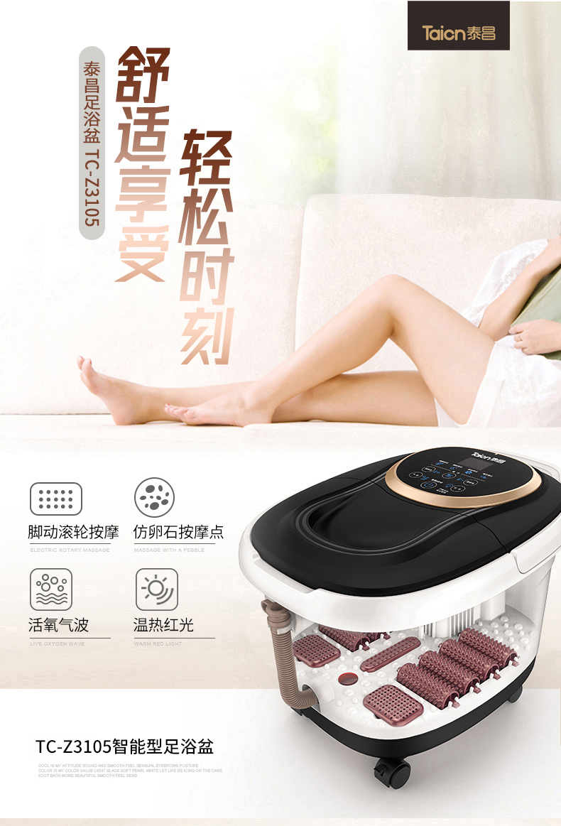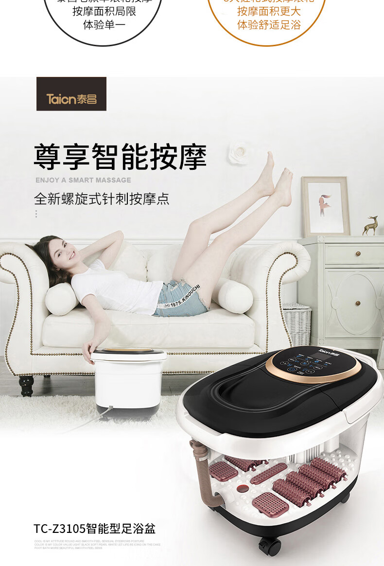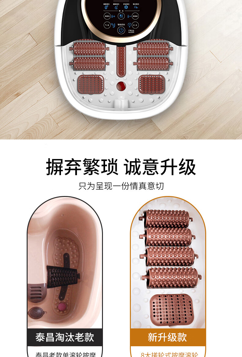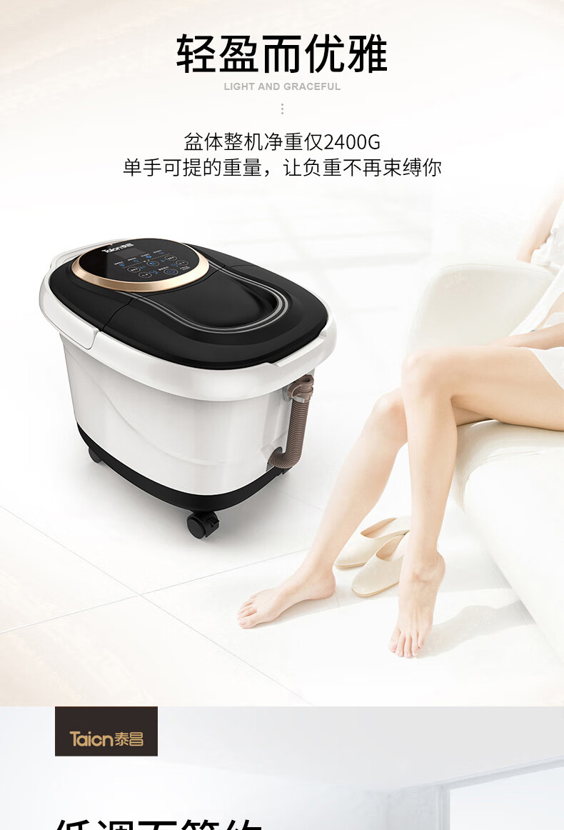 泰昌(Taicn)泡脚桶足浴盆脚动滚轮按摩洗脚盆气波按摩恒温加热水电分离熏蒸泡脚盆