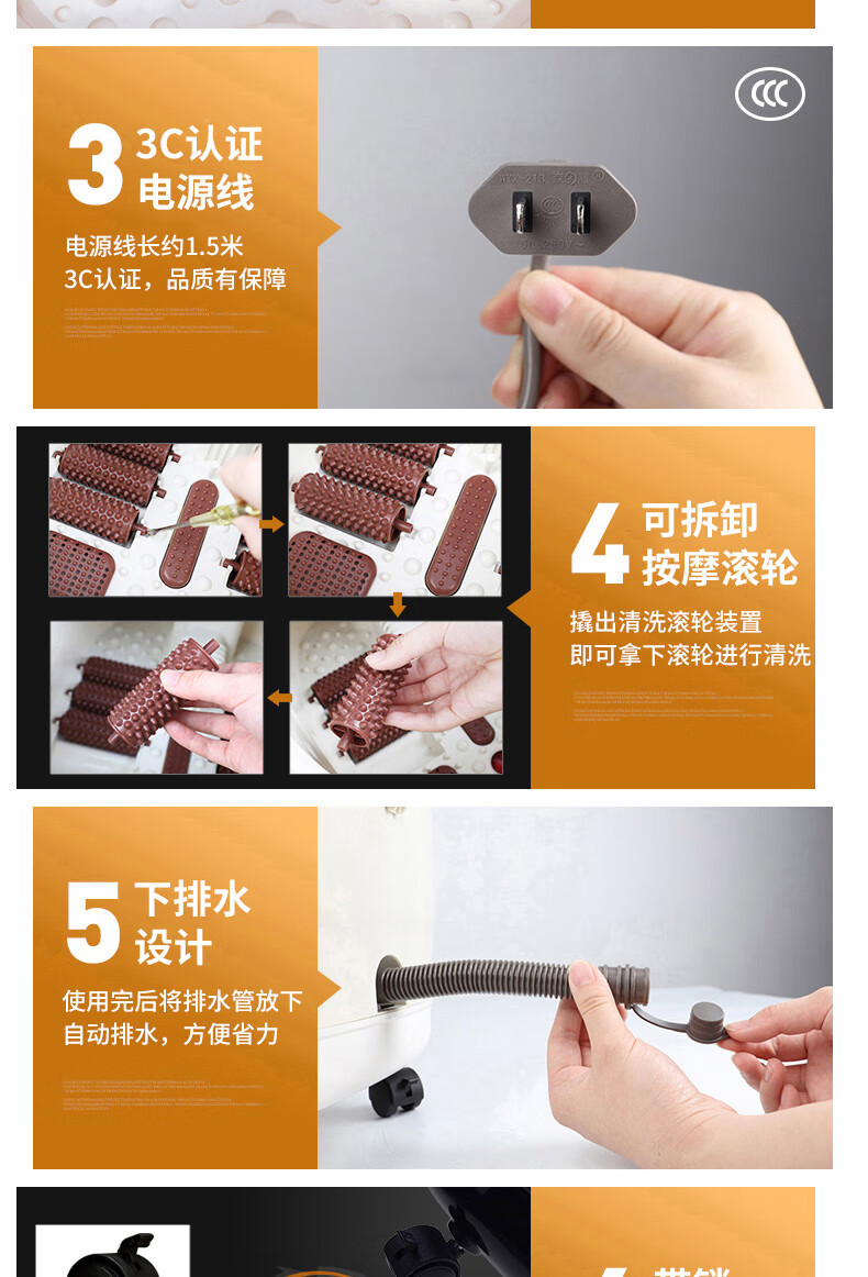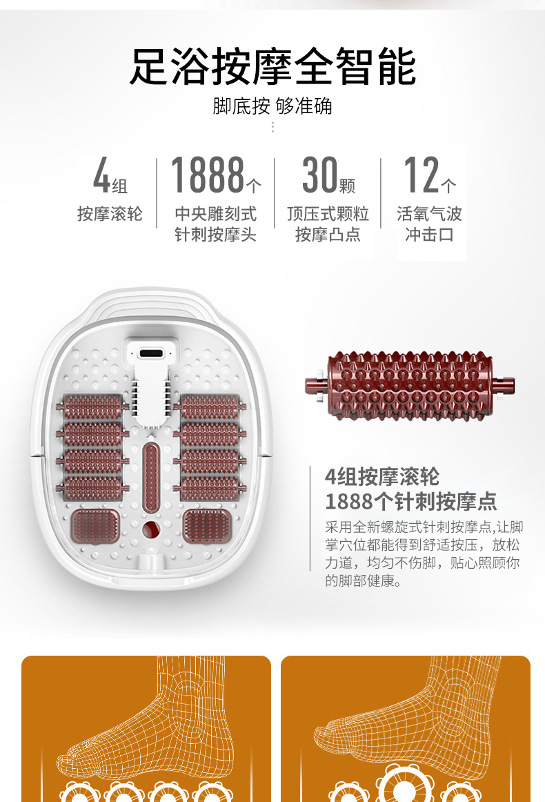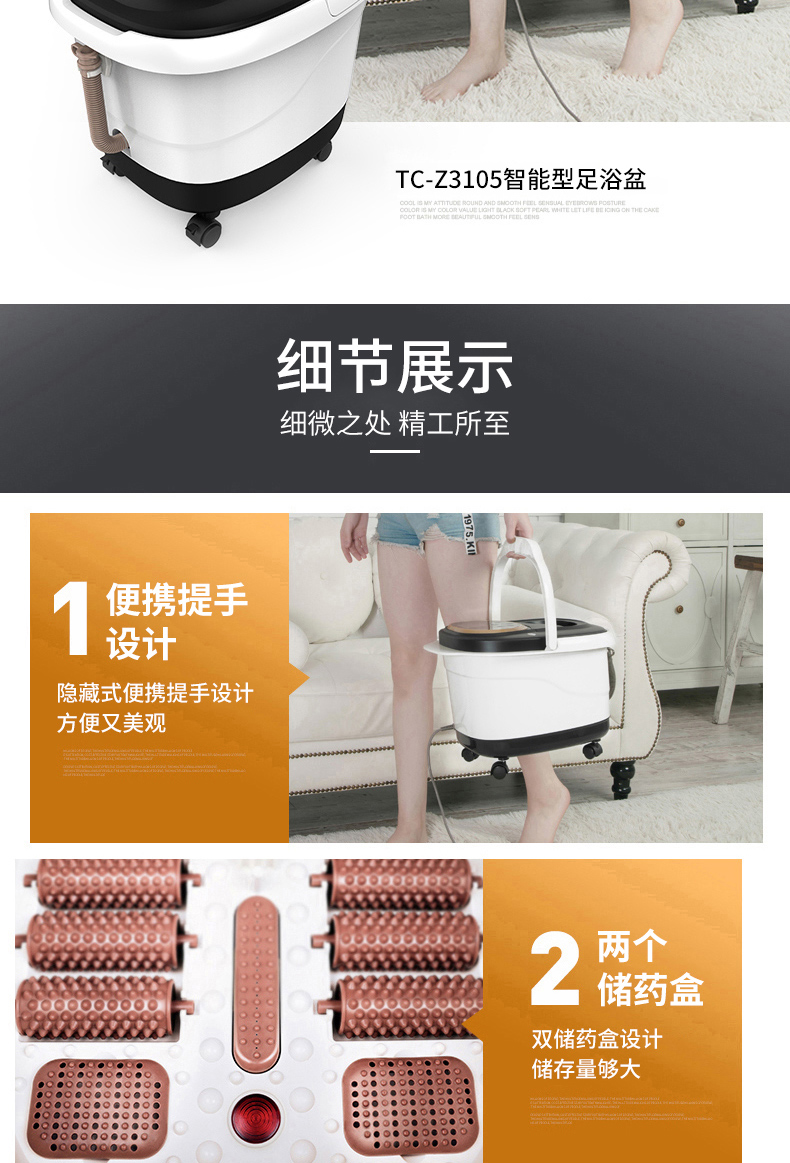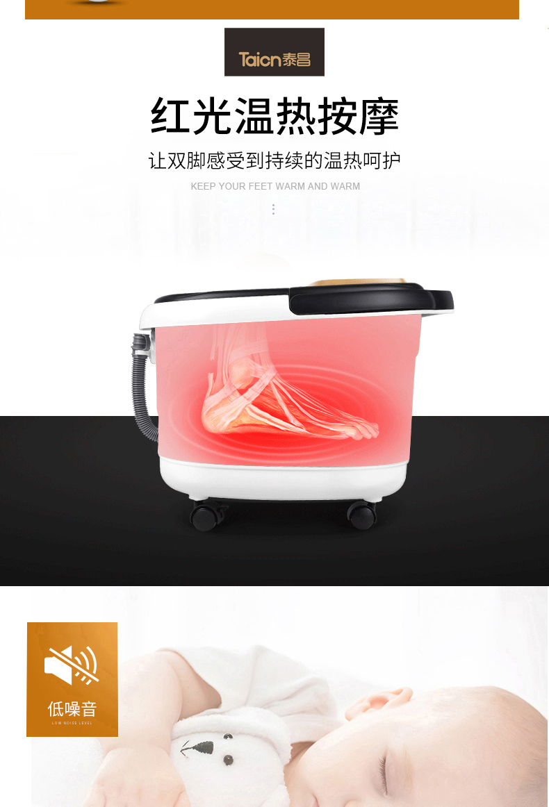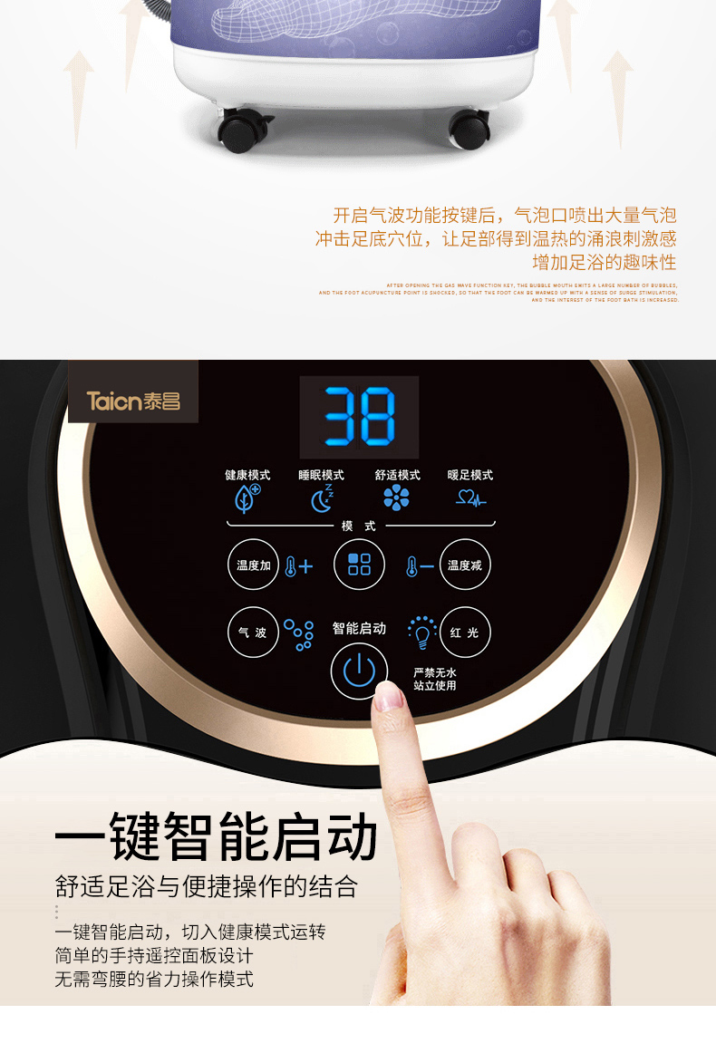 泰昌(Taicn)泡脚桶足浴盆脚动滚轮按摩洗脚盆气波按摩恒温加热水电分离熏蒸泡脚盆