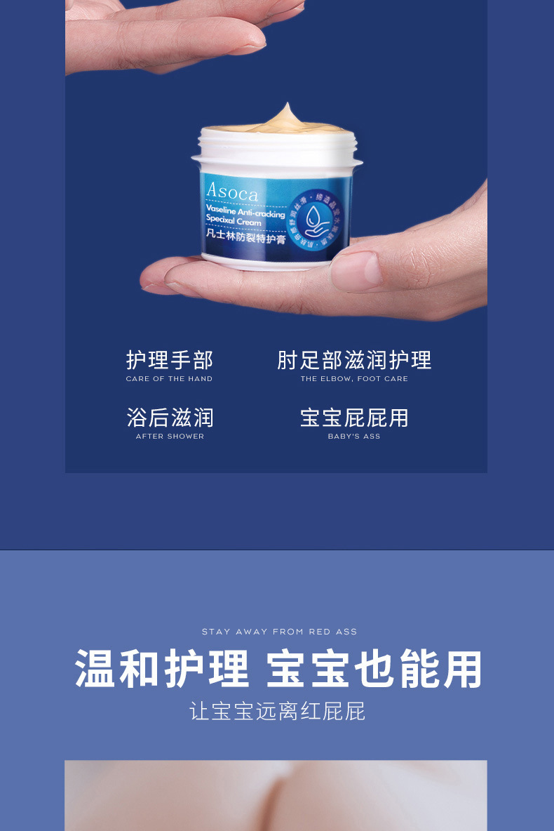 Asoca凡士林护手霜脚后跟干裂防裂防冻手足皲裂修护滋润倍护