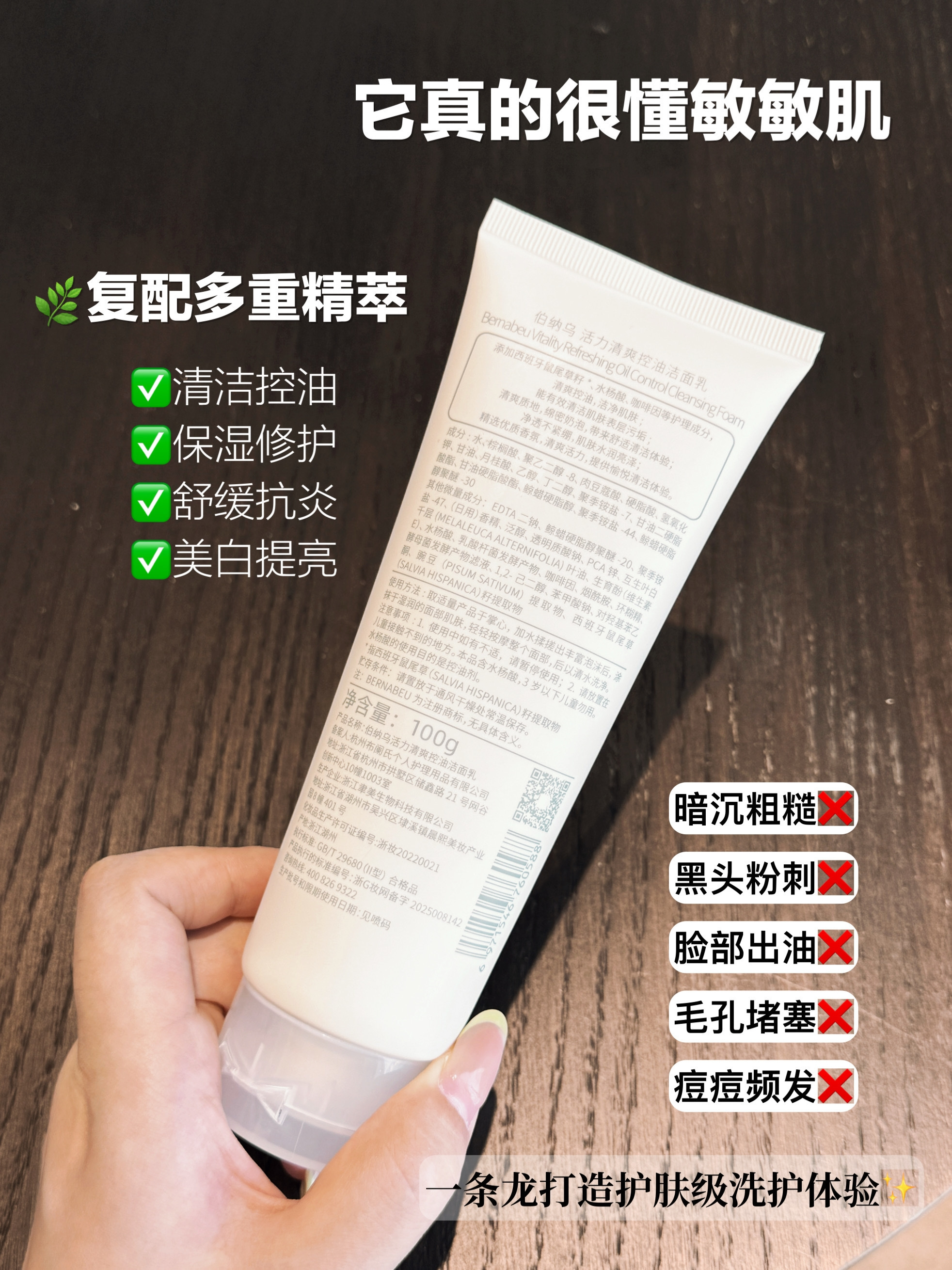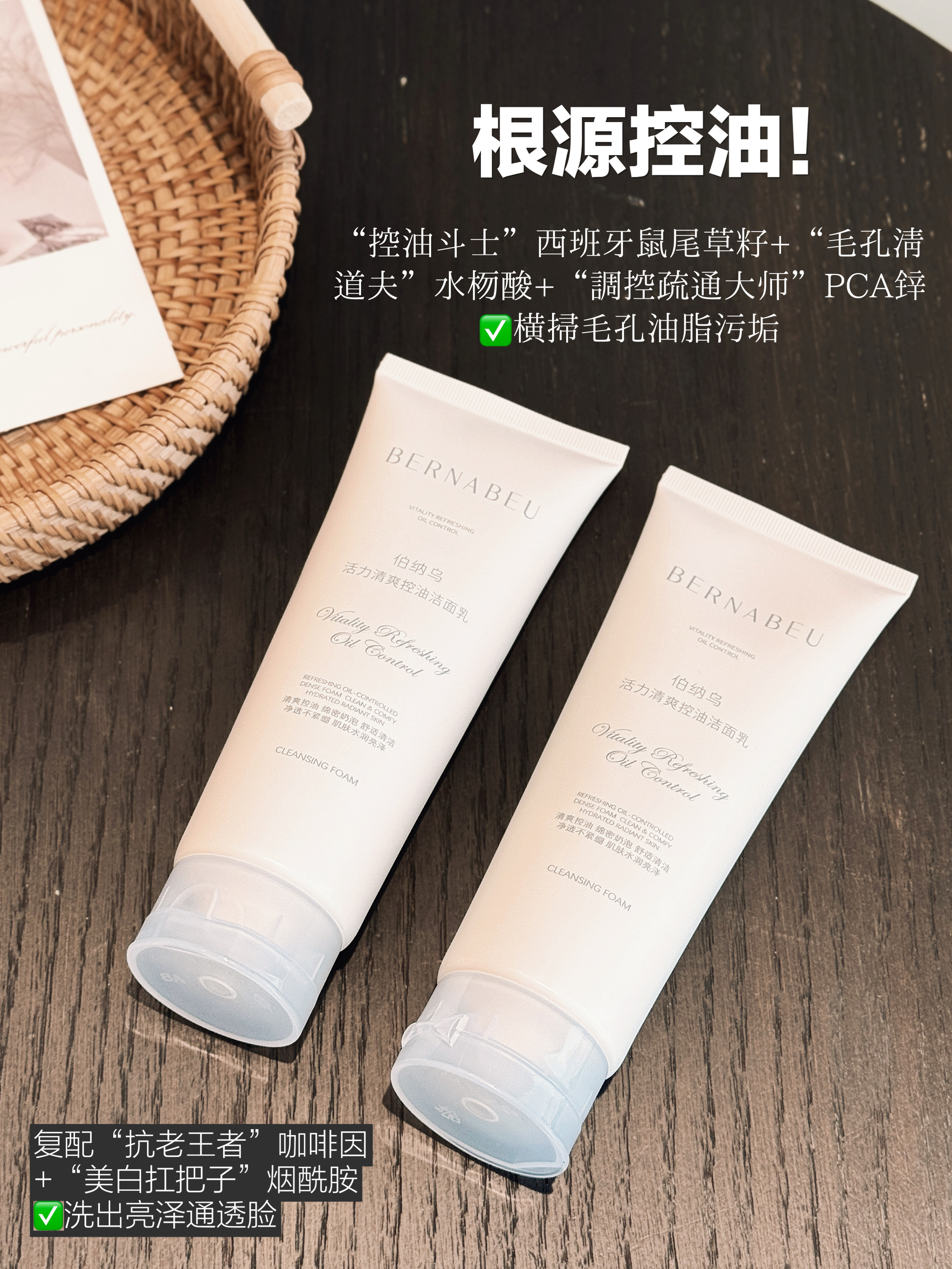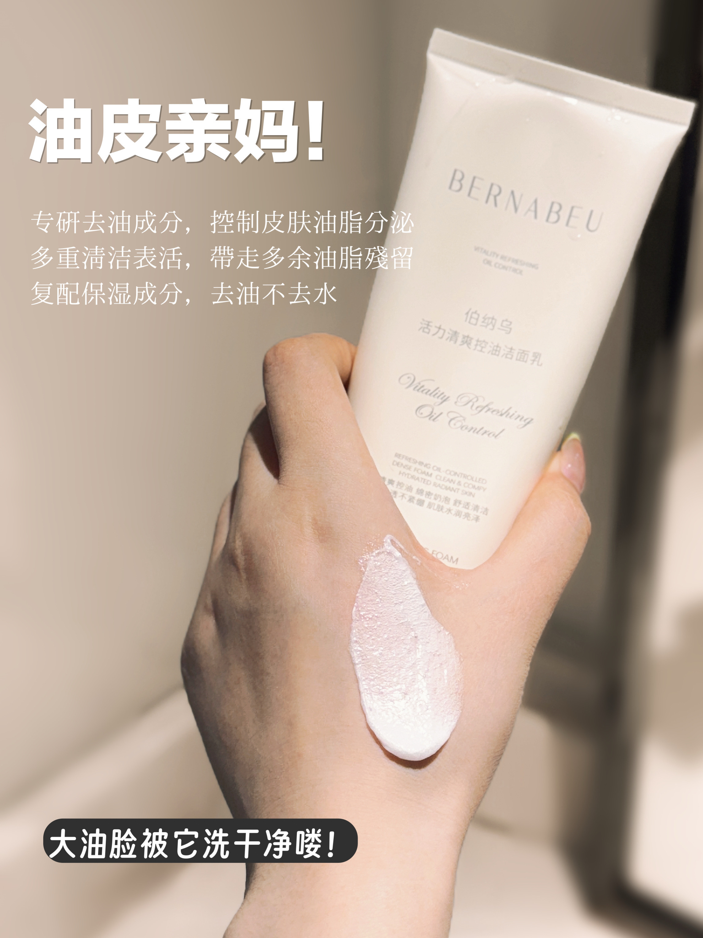 【伯纳乌活力清爽控油洁面乳】全肤质通杀!口碑好到爆炸!核心控油成分西班牙鼠尾草籽,根源抑油+净澈毛孔,还能保湿抗氧化!复配水杨酸、烟酰胺、透明质酸钠…