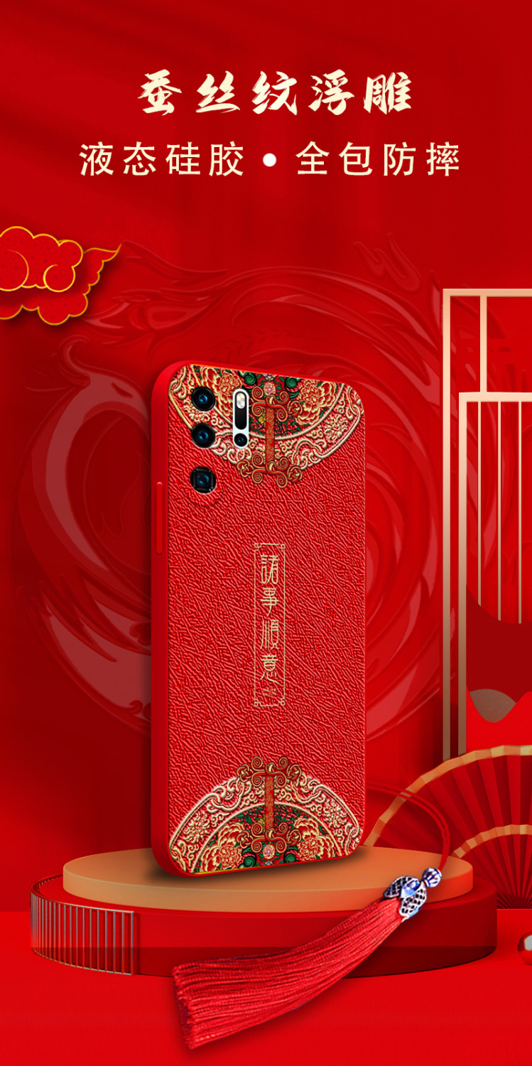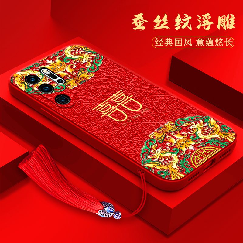 2022新款华为p30手机壳p40pro+镜头全包防摔软壳p20p中国风喜庆红