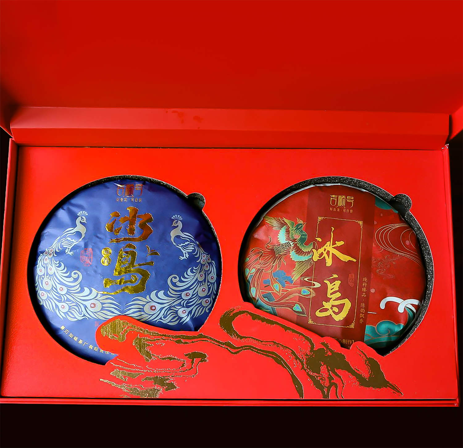 【礼品茶】吉顺号普洱茶冰岛生茶熟茶双饼礼盒357克*2饼(带礼盒) 商品图3