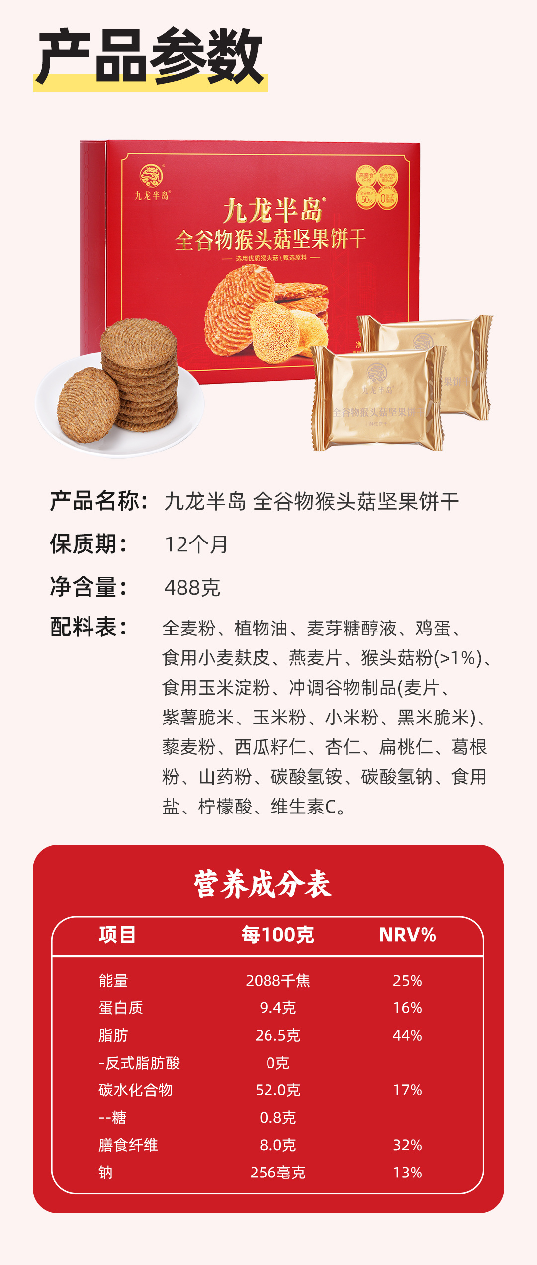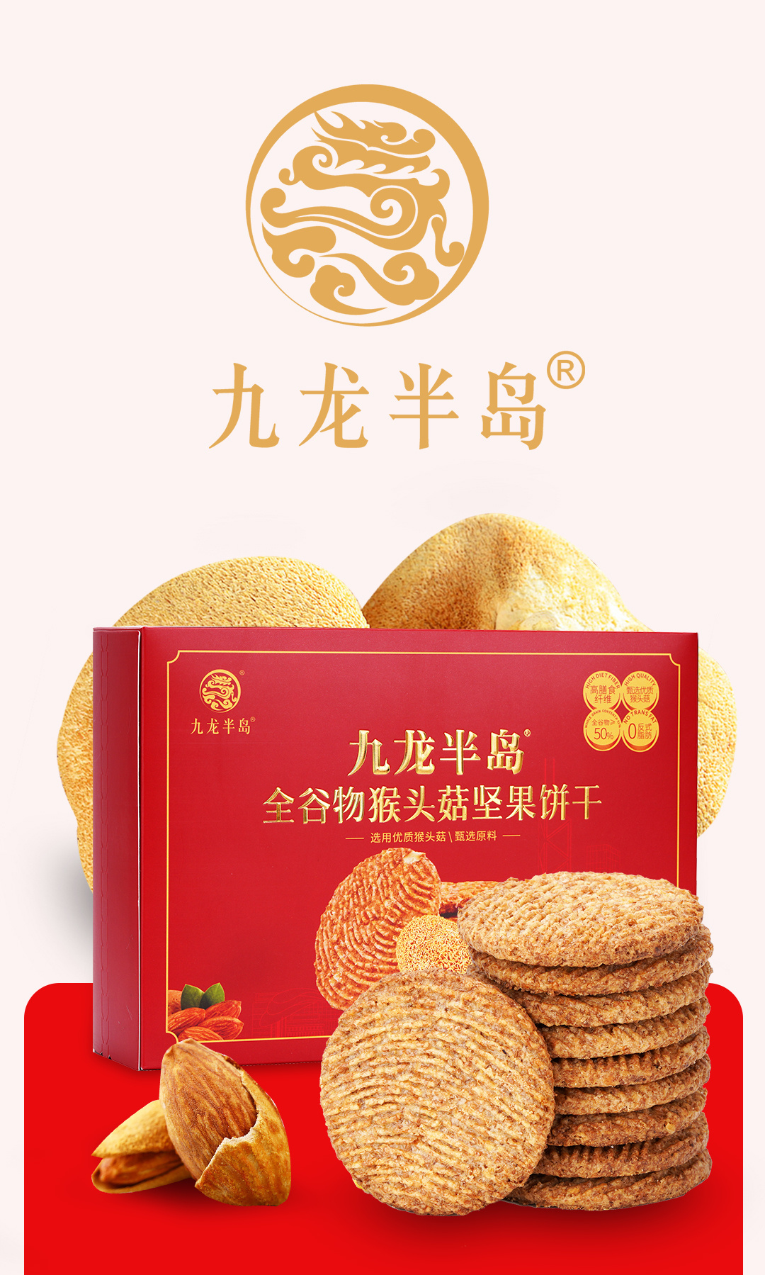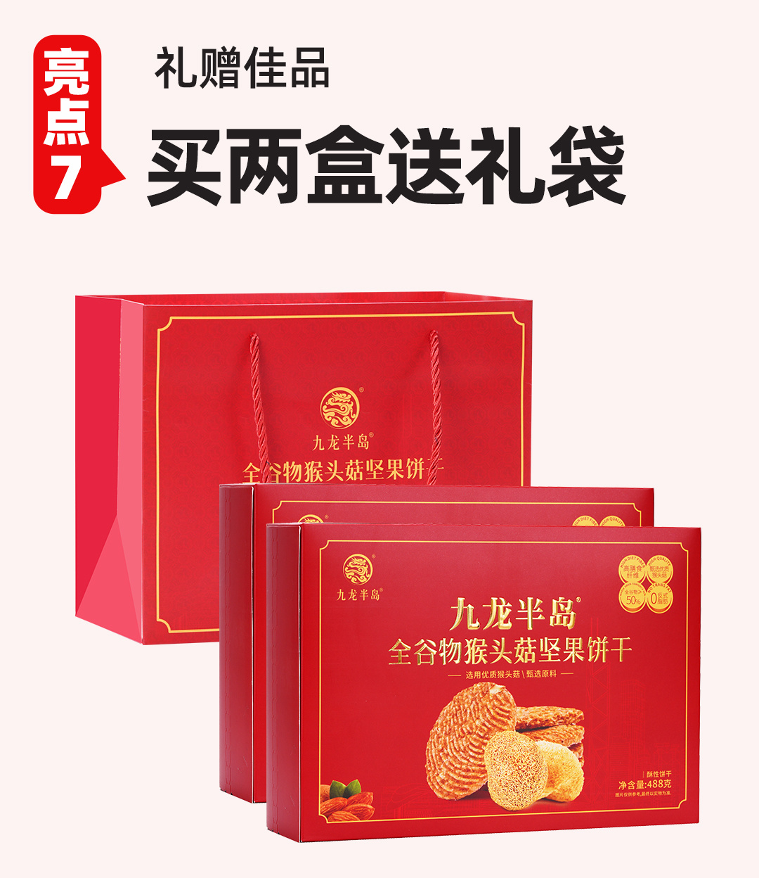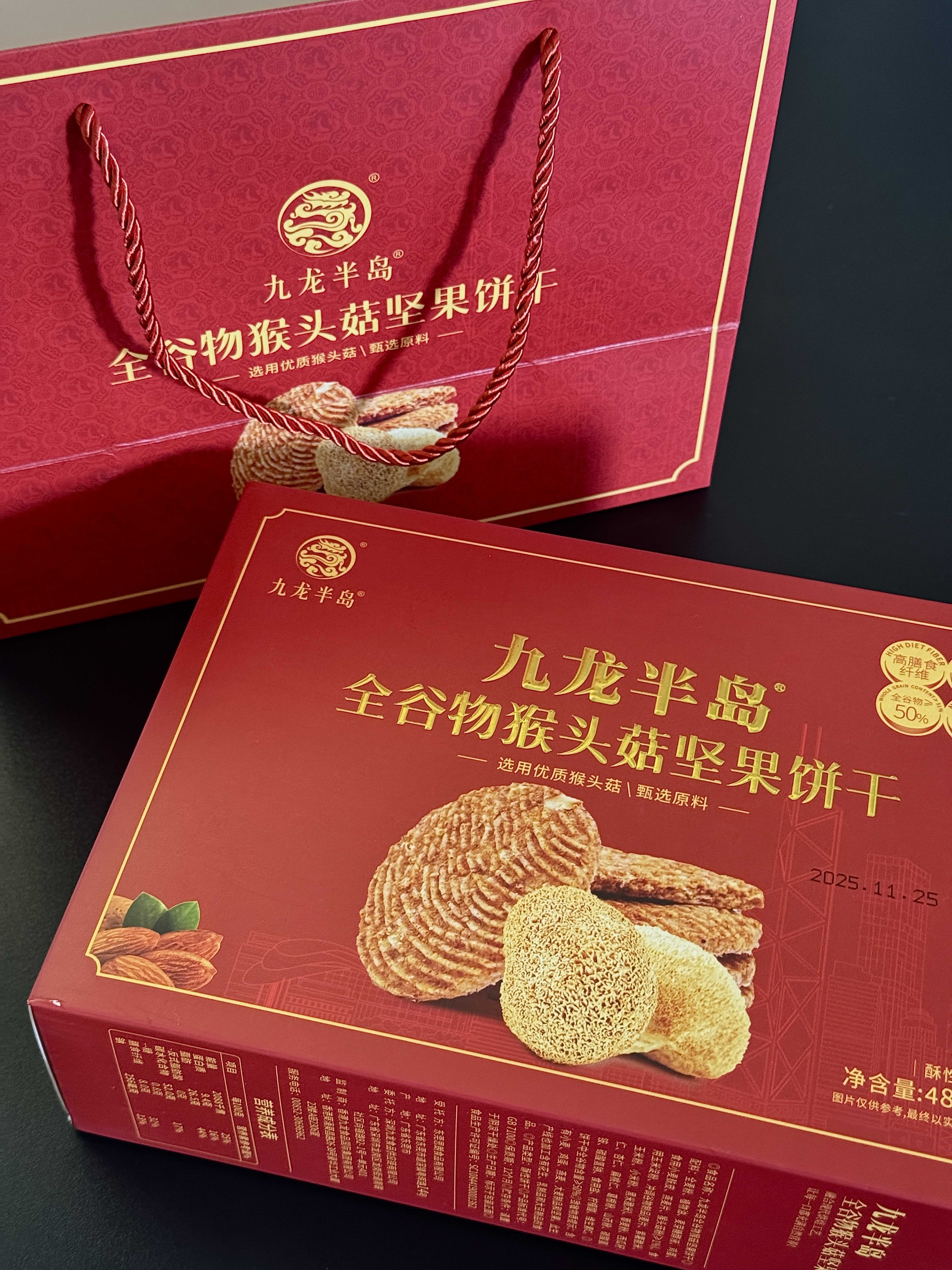 香港九龙半岛猴头菇坚果饼干礼盒装488g营养代餐健康养胃早餐饼干