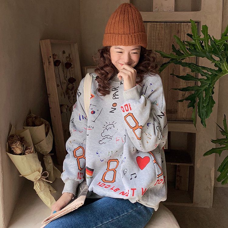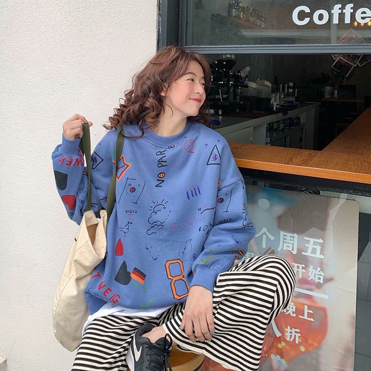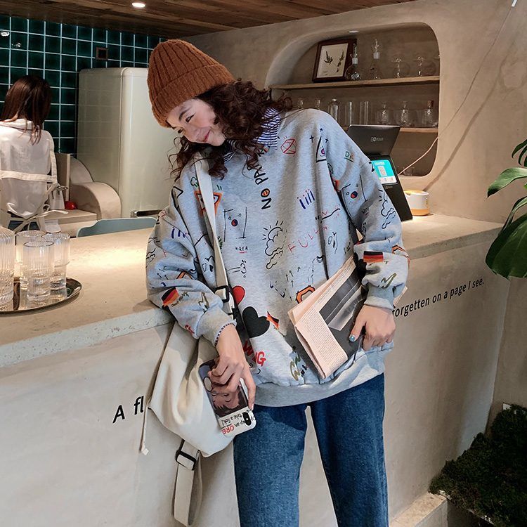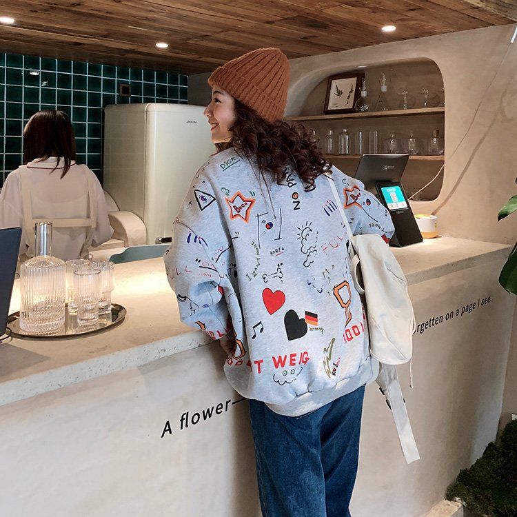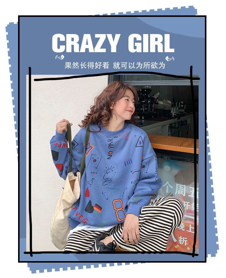 【开春百搭器!减龄显瘦卫衣】多元素印花,设计感爆棚!宽松版型+落肩设计,不挑身材怎么穿都好看,舒适透气运动休闲长袖T恤