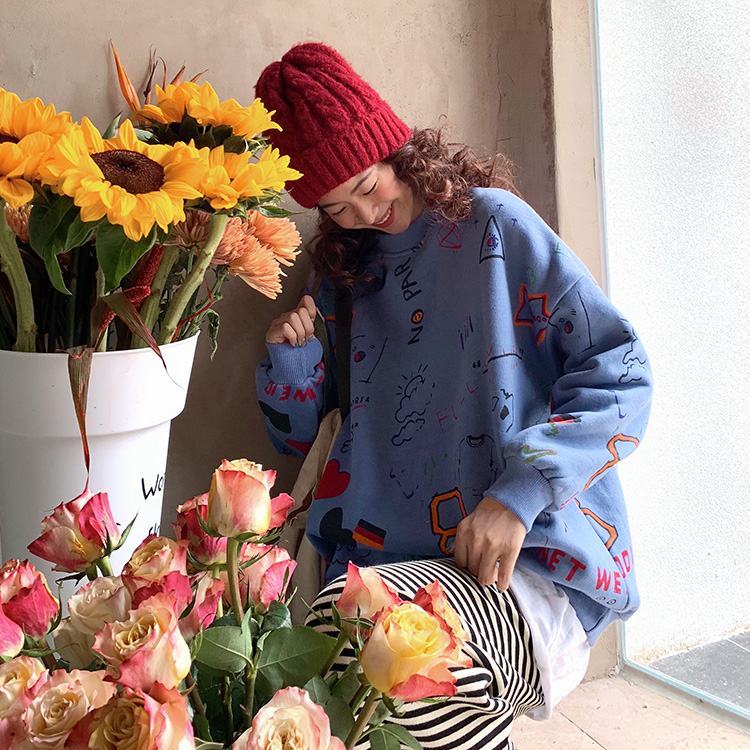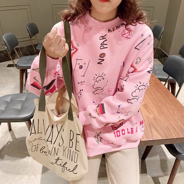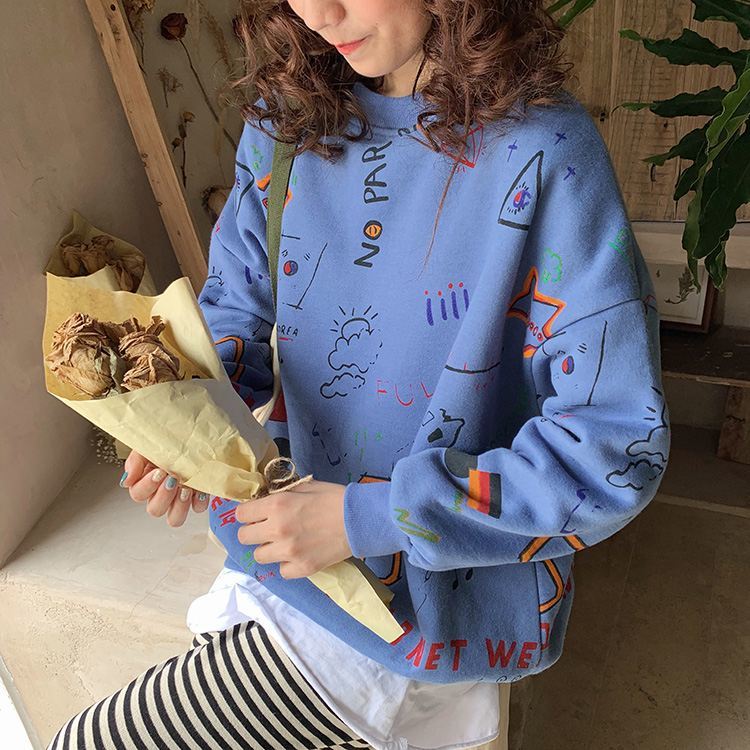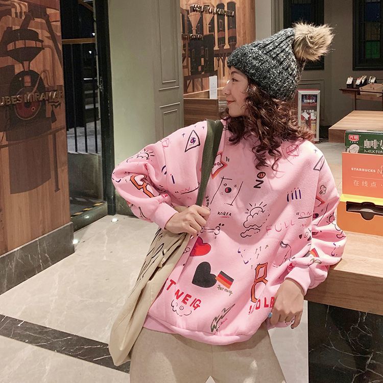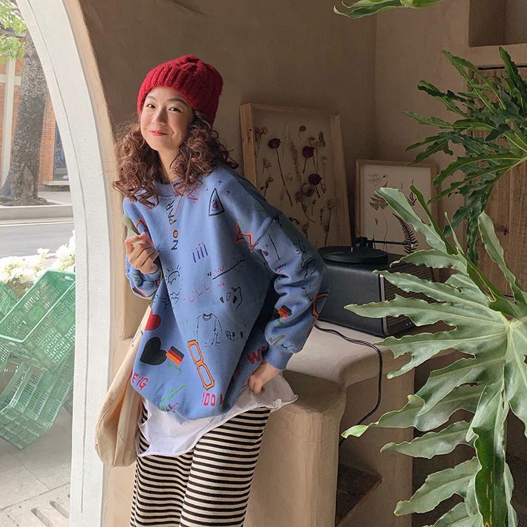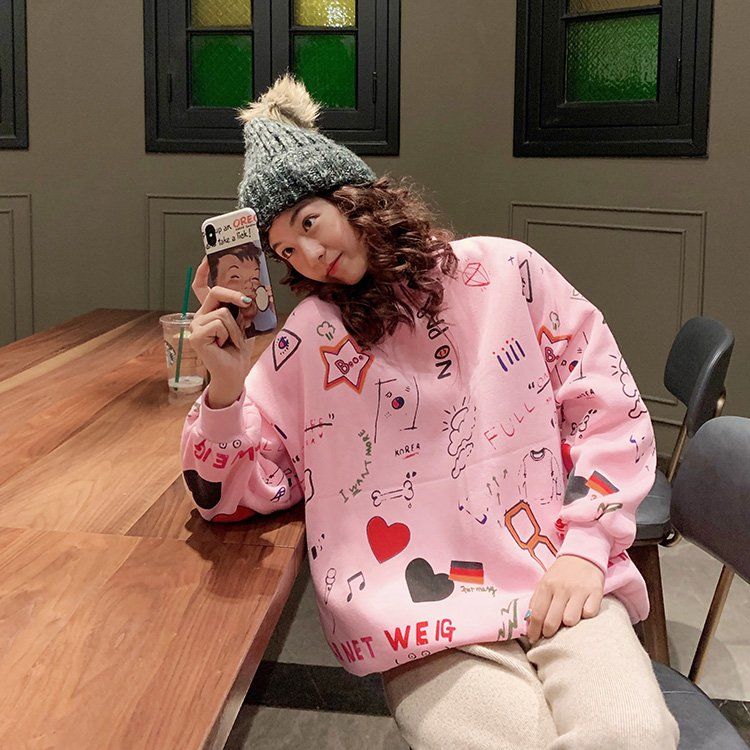 【开春百搭器!减龄显瘦卫衣】多元素印花,设计感爆棚!宽松版型+落肩设计,不挑身材怎么穿都好看,舒适透气运动休闲长袖T恤