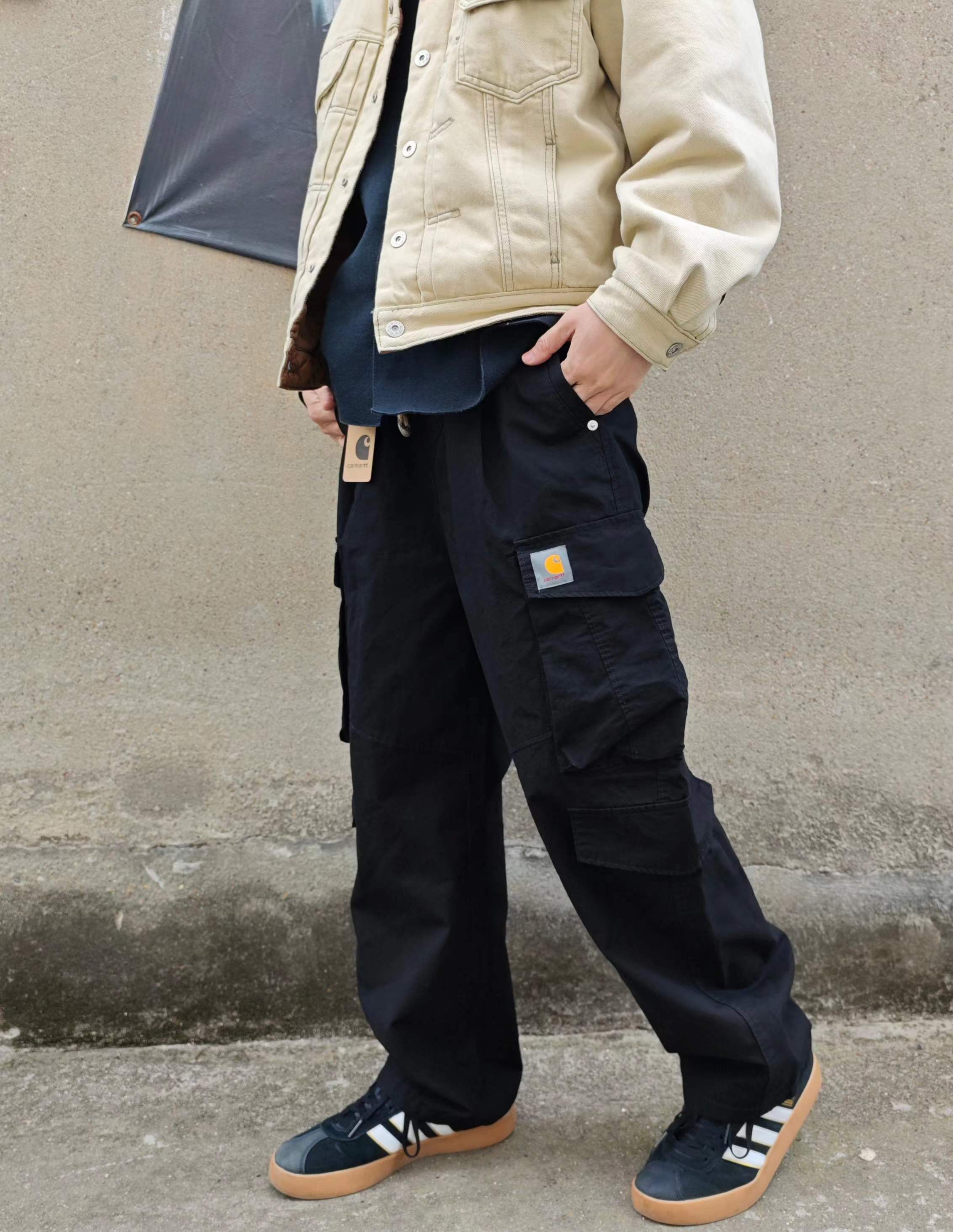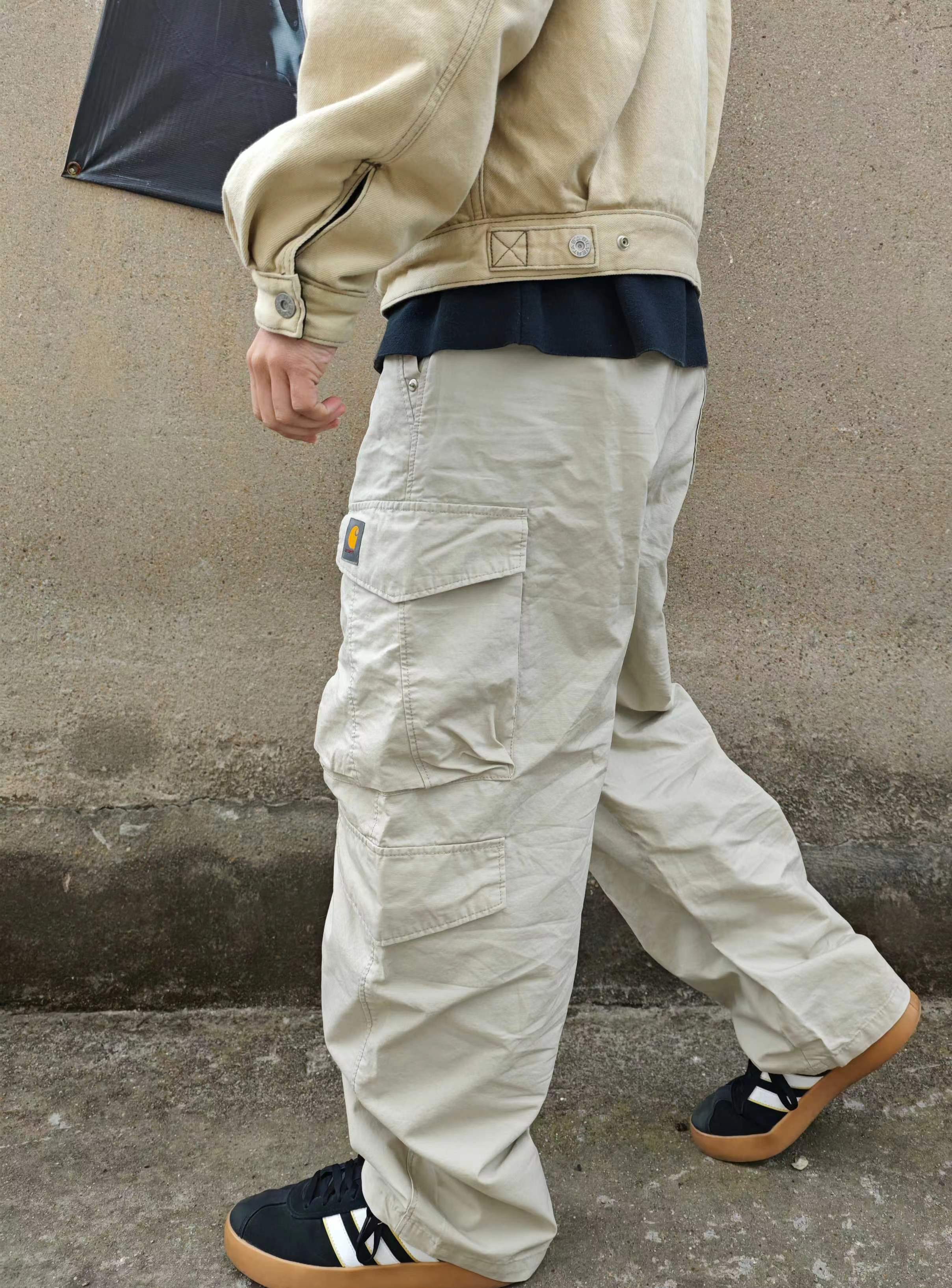 简约美式纯色户外工装裤,人气款工装裤 面料采用100%棉6.5盎司,高品质舒适度高。宽松os版型,原厂外贸车工品质,立体裁剪,结构工艺炒鸡复杂,多口袋大容量方便实用。重工柳钉,松紧腰围搭配个性抽绳,看似简单,细节拉满!百搭不挑人,上身效果jue佳!