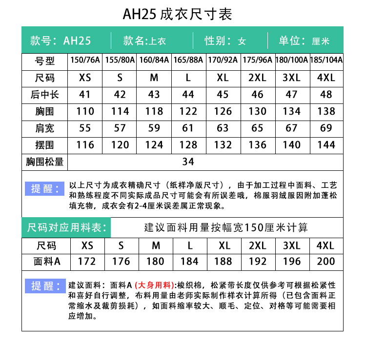 裁缝学苑AH25立领短款小衫纸样女装上衣服装打板版型图纸