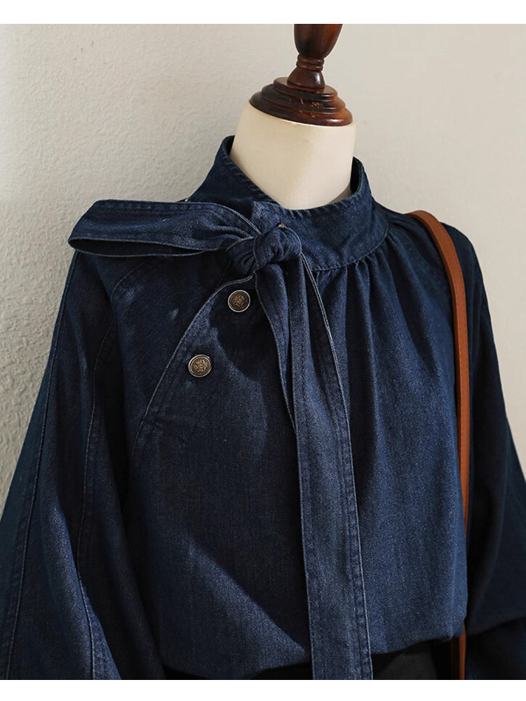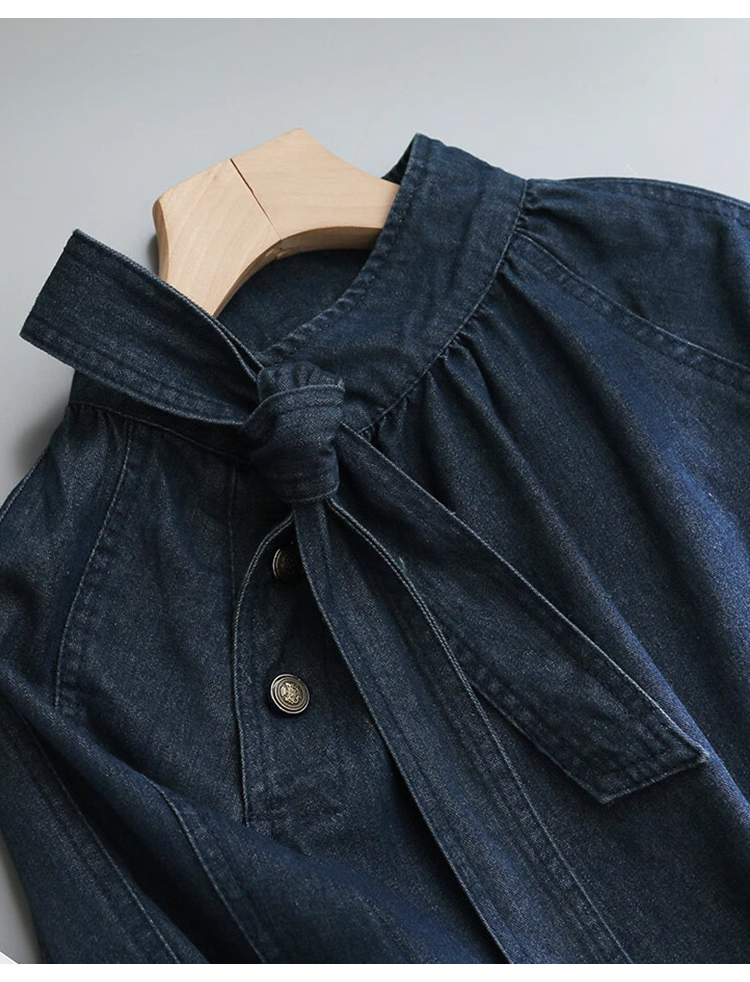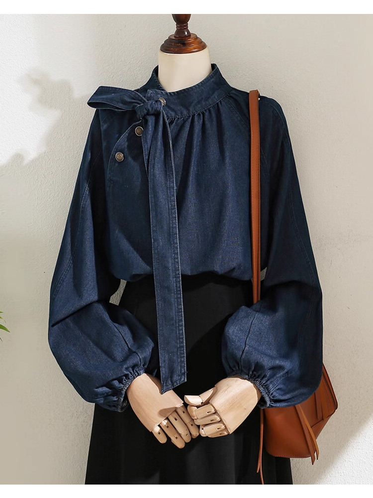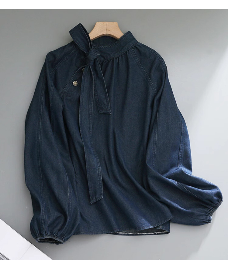 裁缝学苑AS376蝴蝶结系带牛仔衬衫纸样女装灯笼袖上衣衬衣样板