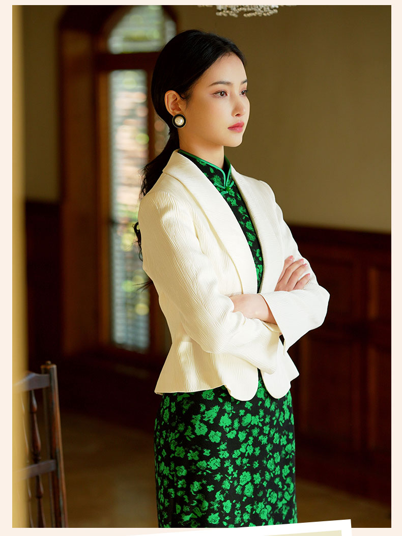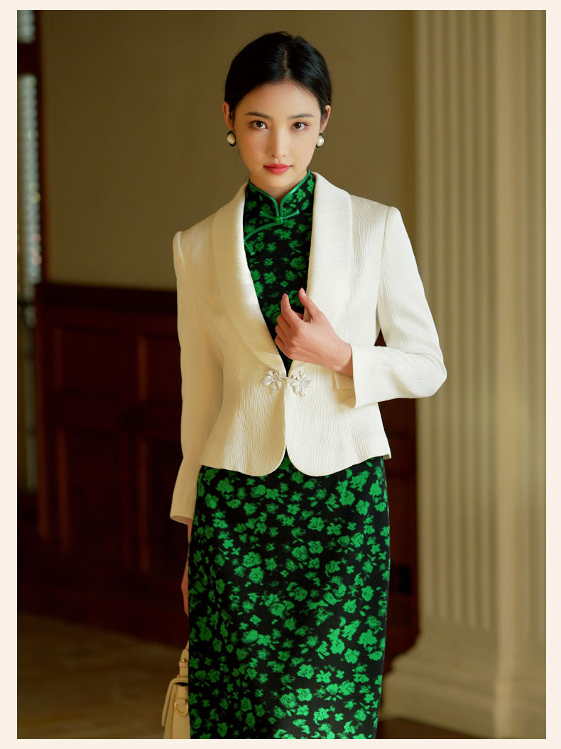 上海逸红颜予安2025春季新款提花外套女中式盘扣时尚旗袍外搭上衣