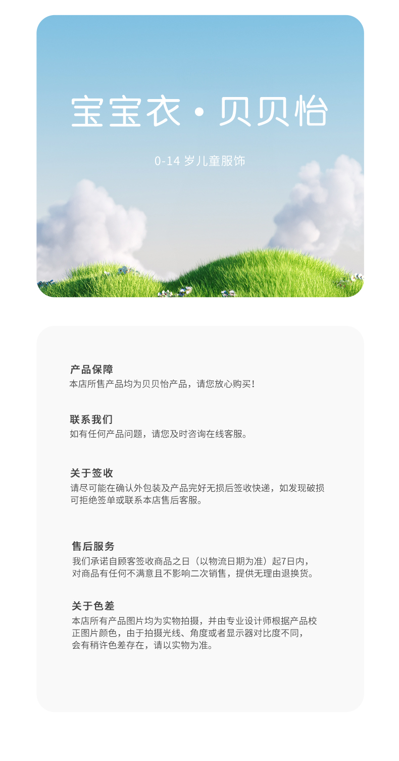 - 贝贝怡专注0-6岁婴幼儿服饰,坚持安全、柔软、舒适的产品理念,为千万中国家庭提供超高品质、安全可靠的婴幼儿服饰产品,妈妈放心,宝宝开心!
