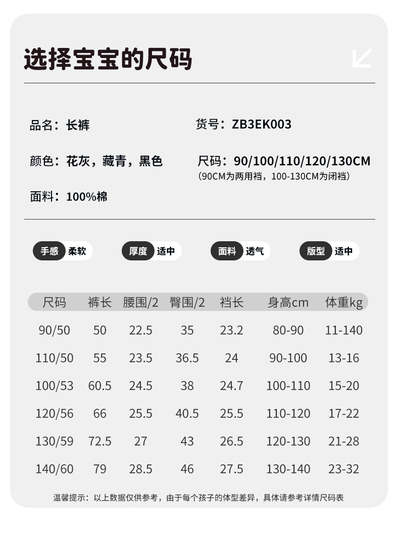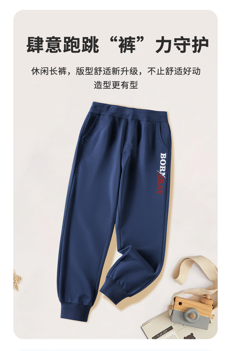 贝贝怡童装儿童长裤2025新款中大童束脚裤休闲男宝宝洋气运动裤ZB3EK003