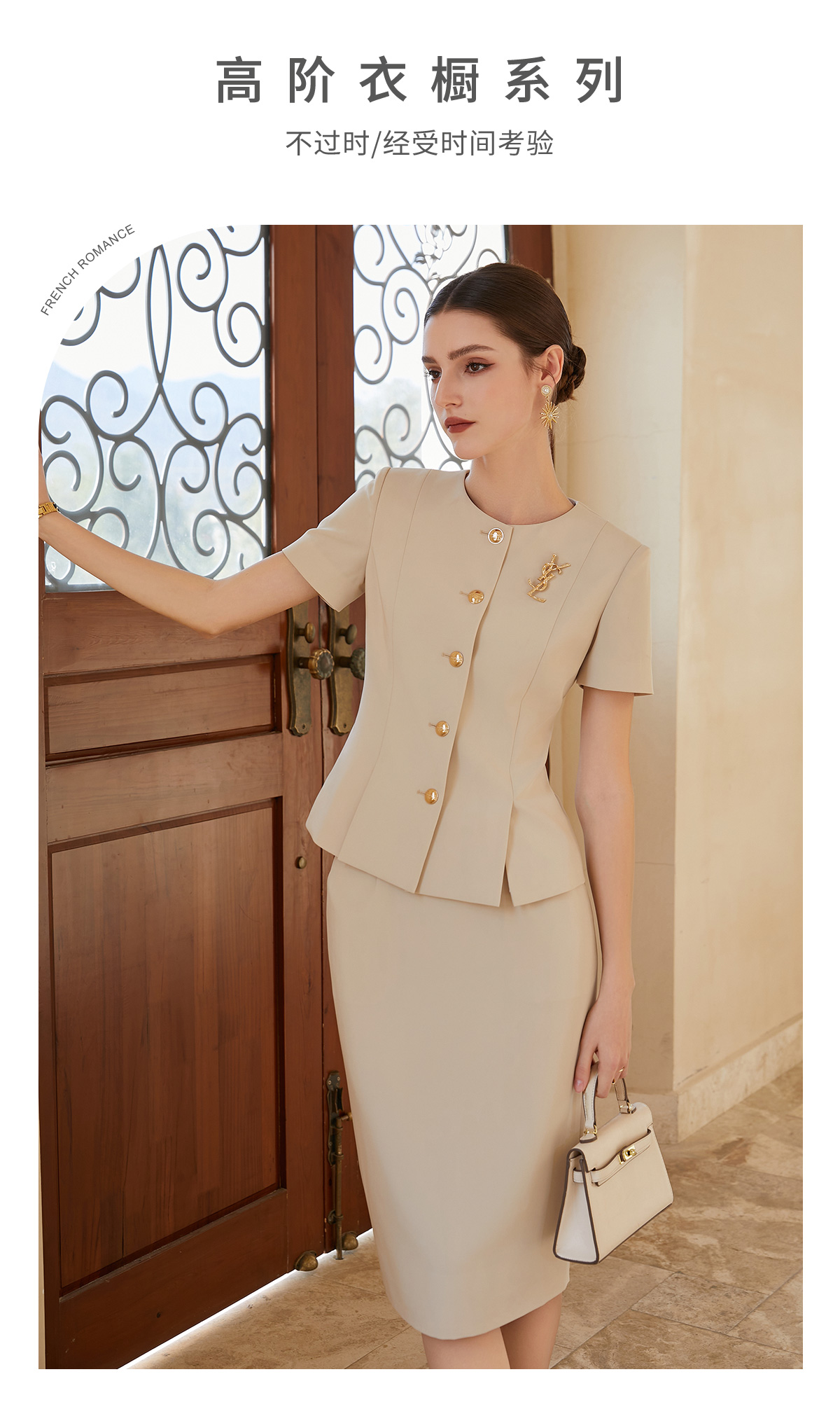 AD气质名媛范西装套装女总裁正装套裙2024夏季时尚韩版米色两件套