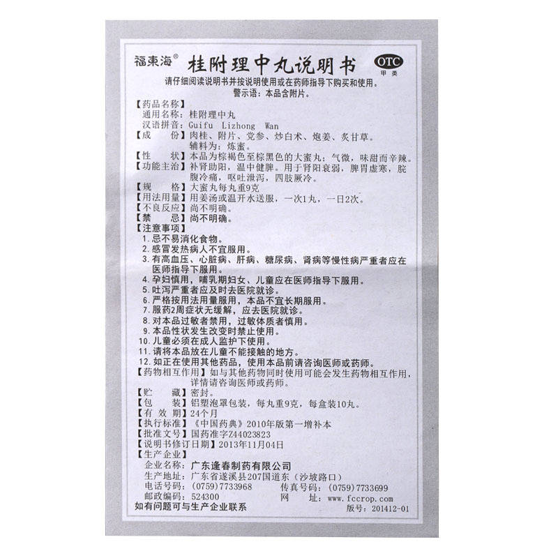 福东海 桂附理中丸10丸/盒 脾胃虚寒 脘腹冷痛 呕吐泄泻