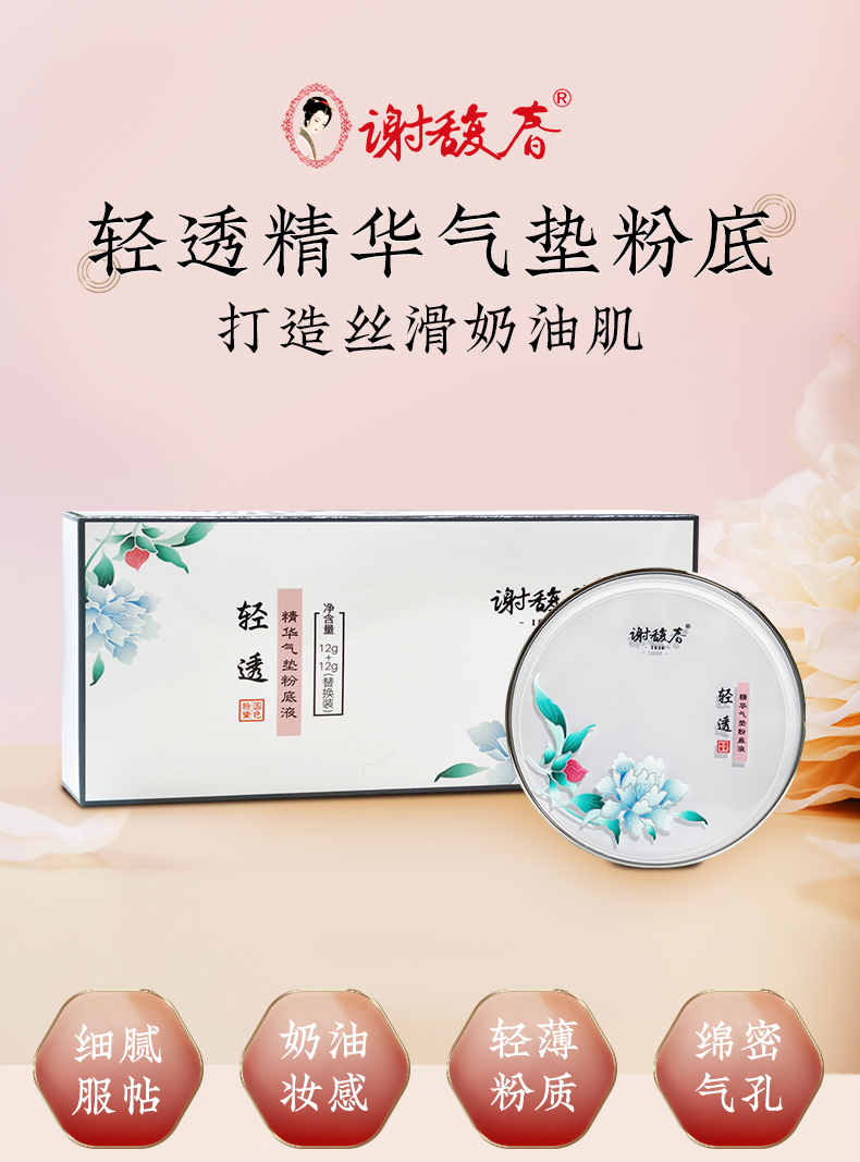 【限时秒杀】谢馥春 轻透精华气垫粉底(内含一正一替)效期2027年5月24日