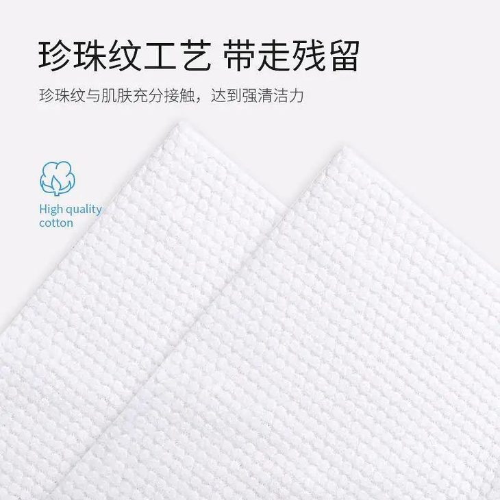 仔细看尤咪优妮洗脸巾,是有纹理的,采用交叉铺网工艺,表面压有凸起的珍珠纹。