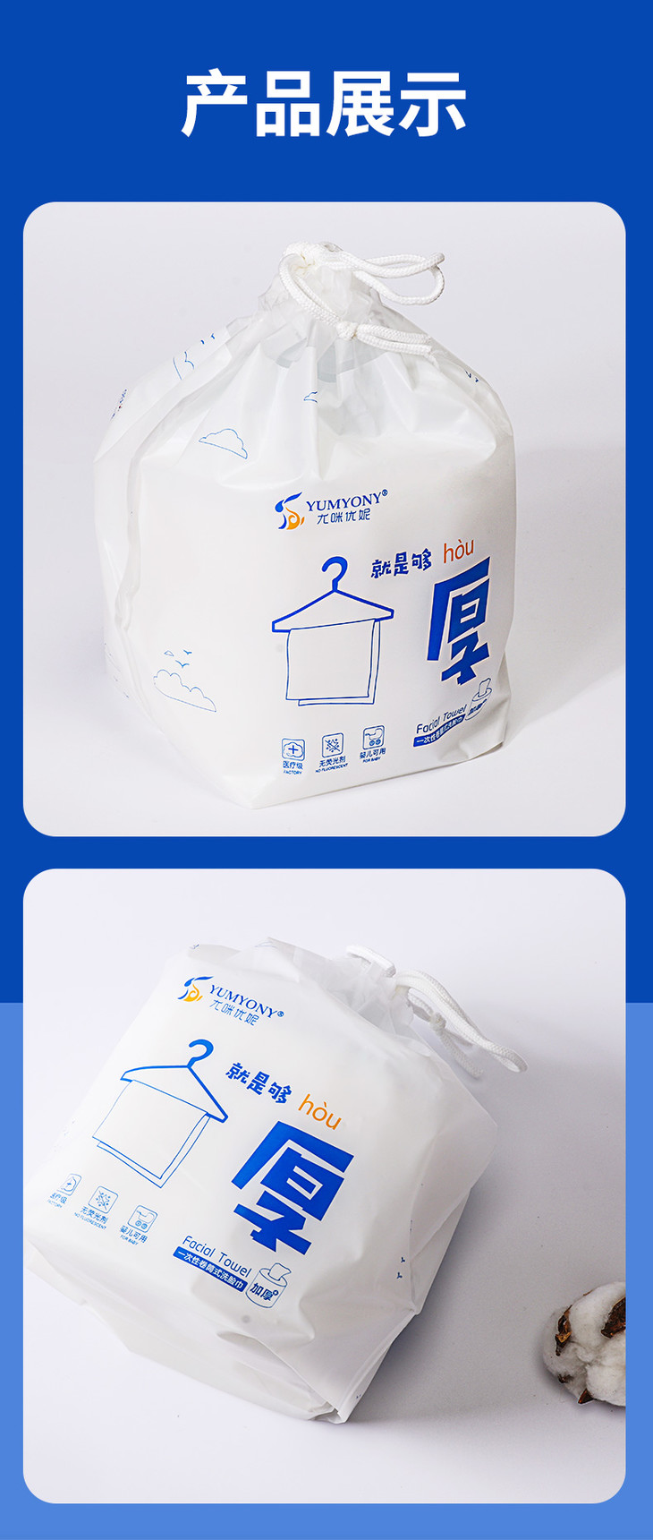 尤咪优妮洗脸巾(加厚款),是很厚实的一卷,可以多次使用。它是桶装的,外罩一个收口式的塑料袋,方便抽取,还防污防尘又防水。