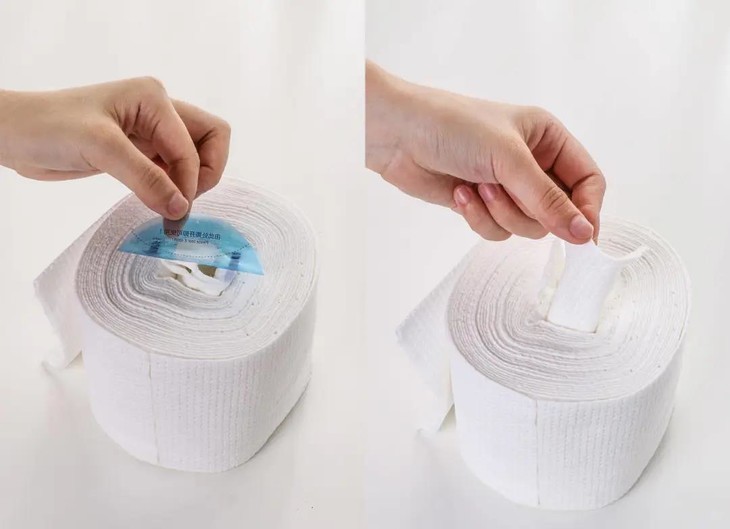 使用前只要撕掉中间蓝色的薄膜,就能进行抽取。