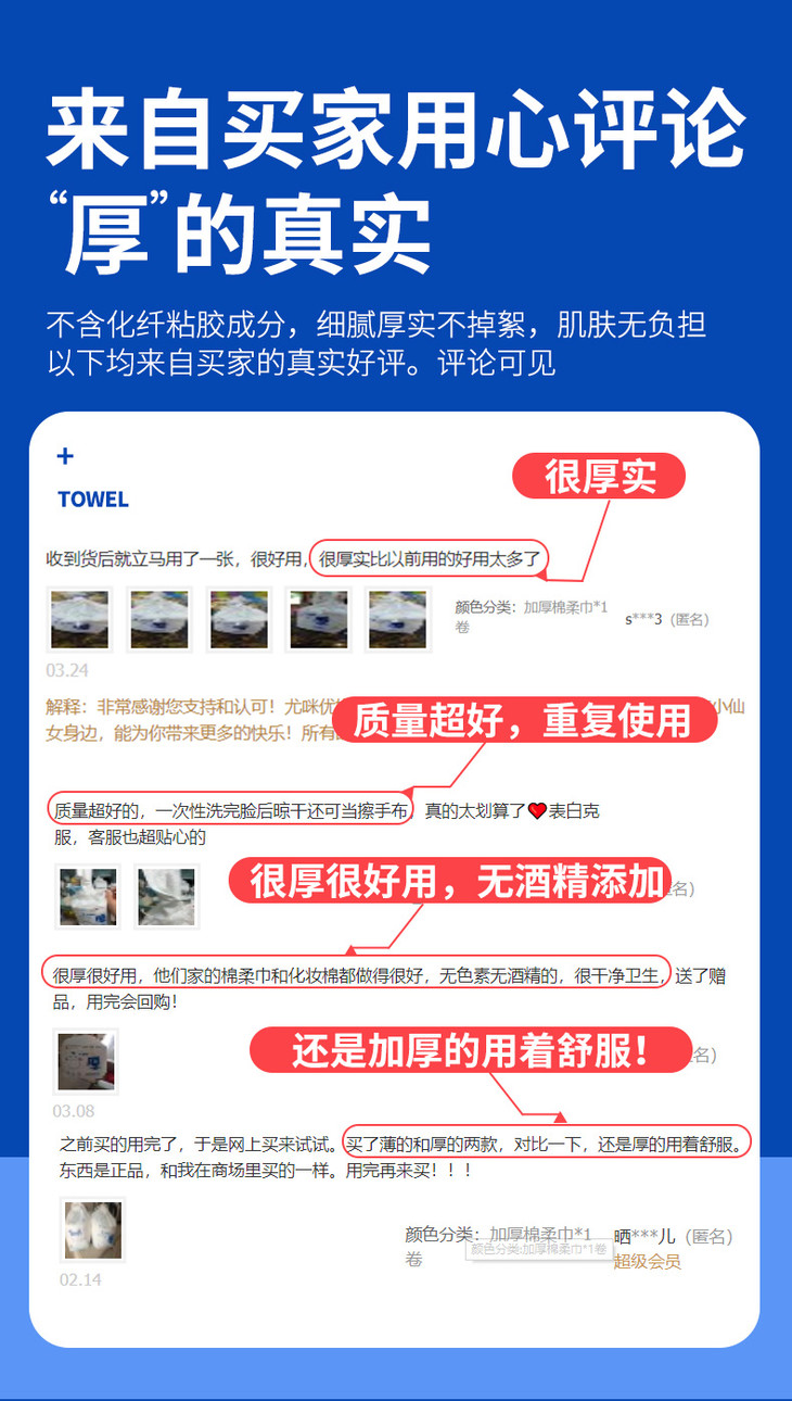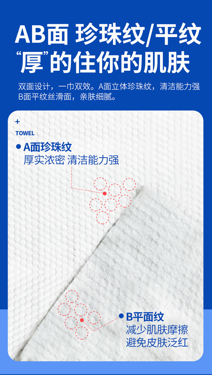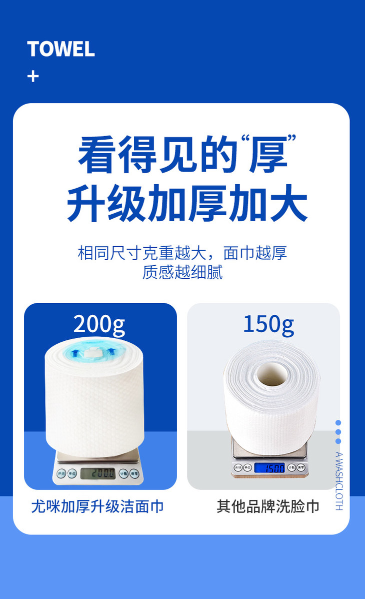 厚度上来看看对比,蛮厚实的,干湿两用,亲肤舒适,1张可替代多张纸巾。