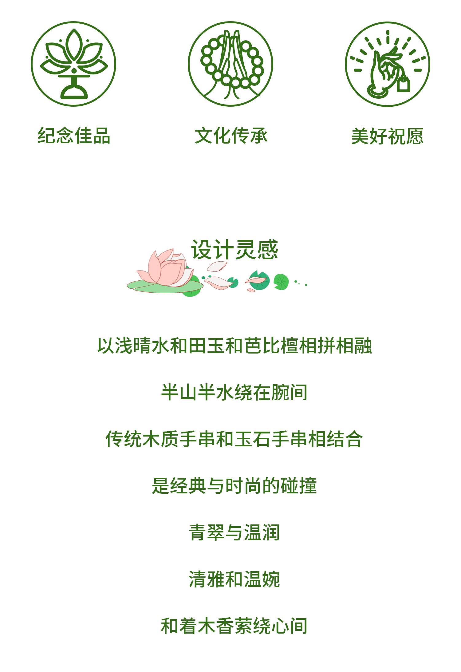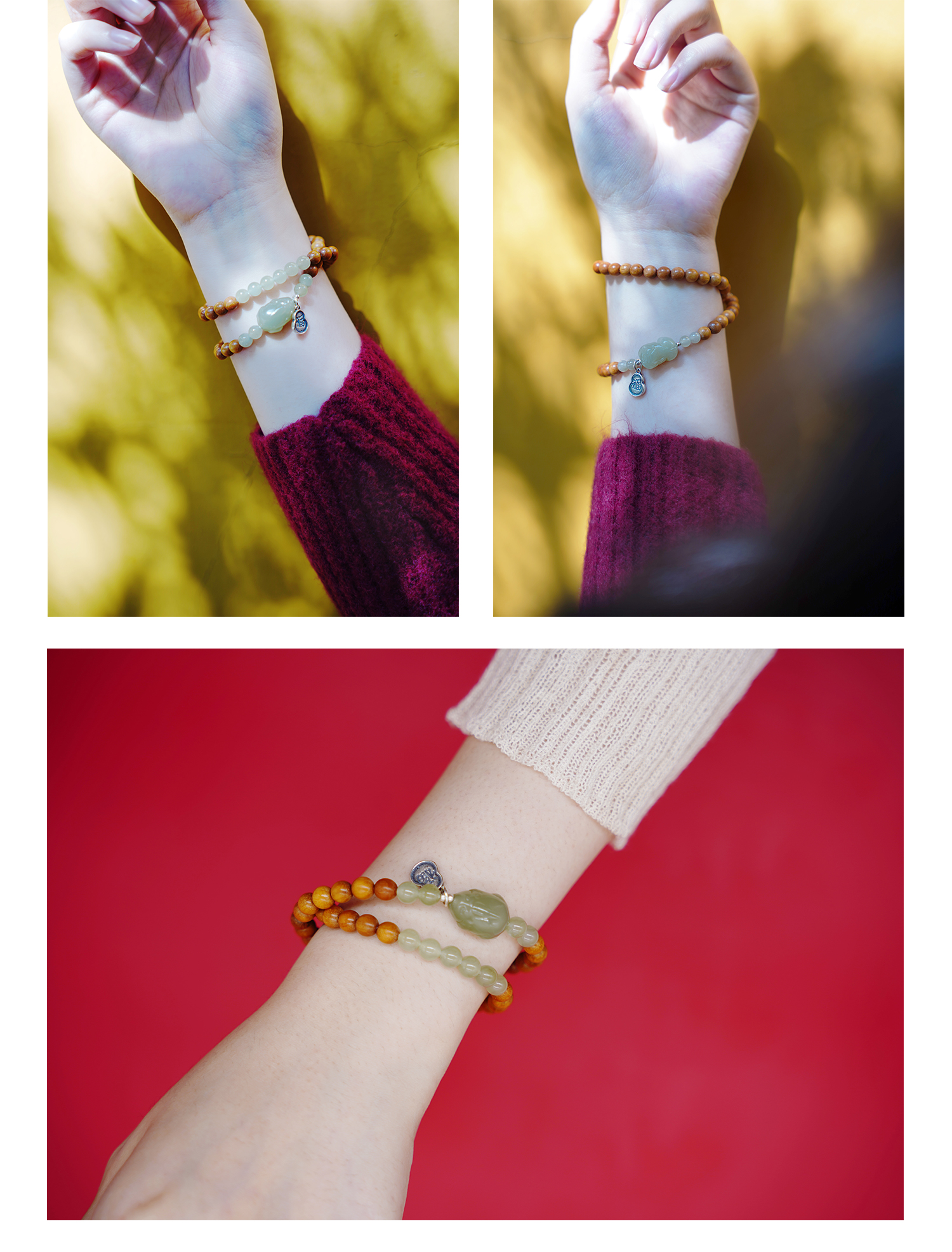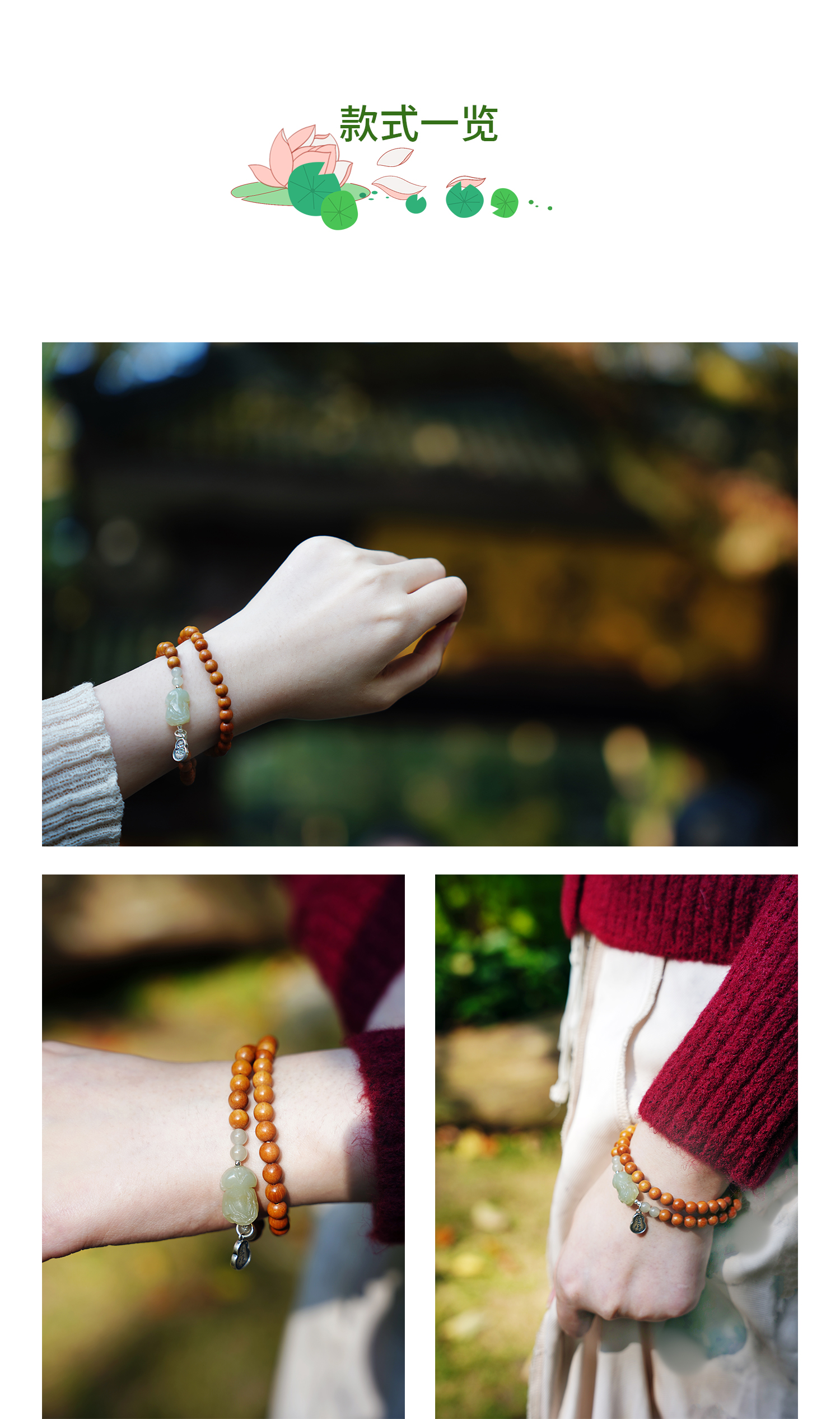 【灵隐景区直发】芭比檀木和田玉双圈手串青山黛中式佛珠女款饰品貔貅坠子串珠