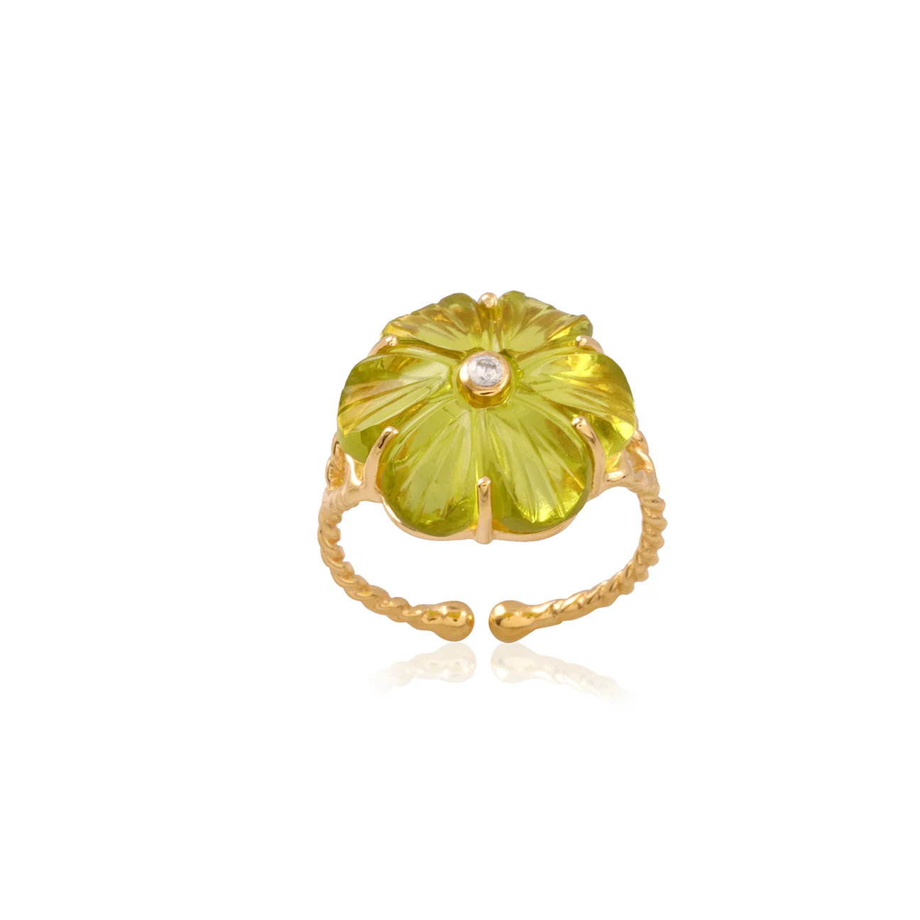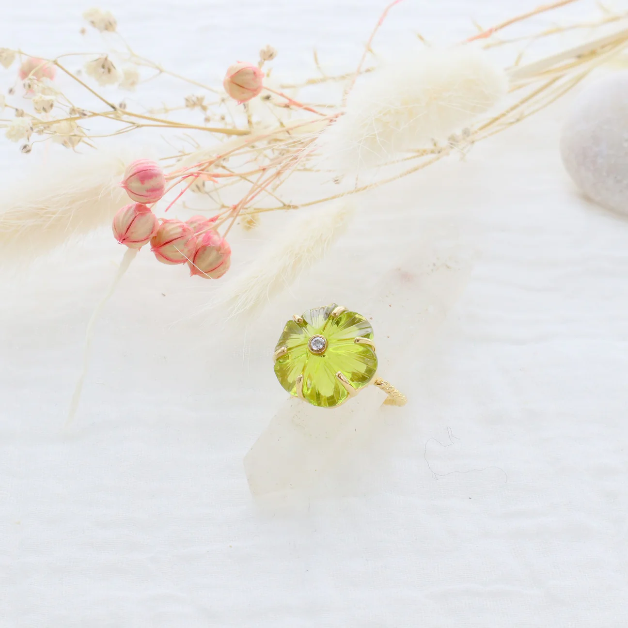 北京仓|Leticia Ponti-Iris-橄榄石色 水晶 花朵 戒指[法国设计师]