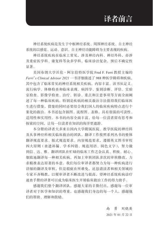 Ferri临床诊疗指南——神经系统疾病诊疗速查手册 南勇 刘晓英 主译 北医社