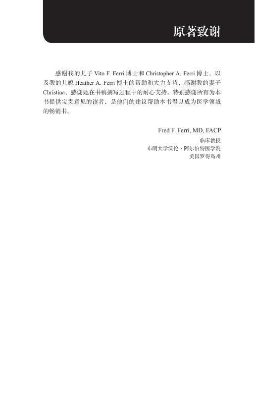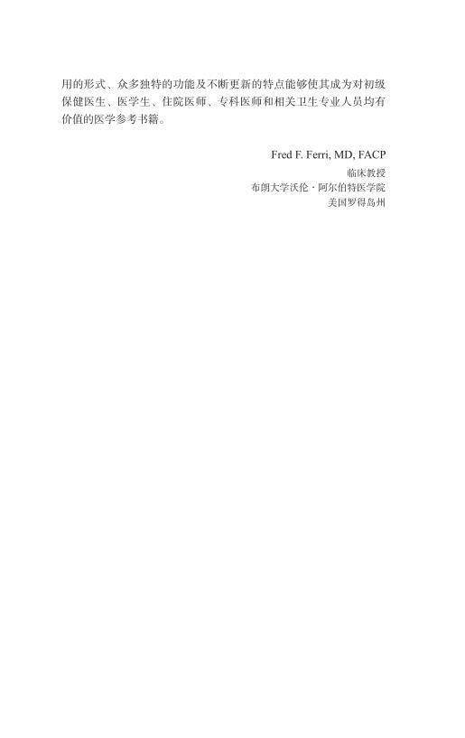 Ferri’s Clinical Advisor是一本经典的医学专著,一直为世界各国的临床医生、医学生和患者提供准确、简明的专业指导。原著编写团队紧随医疗行业的发展,不断对学科内容进行优化补充,更新及时、实用性强,被众多国外医学院校列为必备参考书。