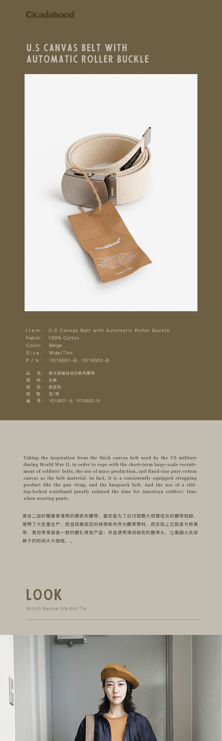Cicadahood美式滚轴自动扣帆布腰带 原胚色 无性别款